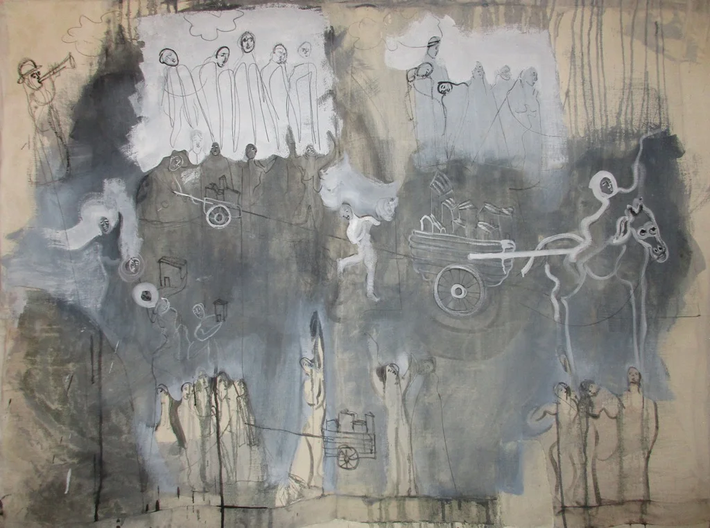 Nelle opere di Alfonso Auriemma si incentrano le ricerche interiori che nella ricerca di un bello struggente, si dedica ai codici delle umane vicende, e con le loro credenze e allo stesso tempo verità da seguire, sono le pietre miliari per la sua ricerca, dove santità e senso dello spazio/tempo si incrociano con giardini fluttuanti dove l’ambiente è solo un contenitore dove gli specchi e le aperture sono fuggevoli aliti di vita che l’artista tratteggia con il desiderio di rappresentarne l’essenza piuttosto che la materia. I colori sono rarefatti come le figure che nel senso stretto dell’armonia trovano posto nello spazio di memoria e memorie, che sono figlie dei secoli passati, e dove le leggi del tempo portano nell’infinito, il racconto dei cavalieri e le scene familiari in un contesto di racconto provenzale. Il segno è pellegrino, e nelle opere di Alfonso Auriemma è la congiunzione tra i tanti segni degli artisti passati e l’onirico che nell’artista si traduce nella catarsi in cui rielabora il tempo passato, e ne consegna una personale visione surreale, dove se in Egon si compie il senso della vita trattato da Freud; in Auriemma la scissione tra reale e santità è ricercata e voluta proprio per rappresentare la differenza tra il pensiero della ragione e quello trascendentale, e lui che nella razionalità scientifica ricerca le carte migliori e le contamina con la tela, dove le nature diverse dei materiali corrispondono alle nature diverse dei racconti, dei sogni stessi, che son fatti del nulla, se non poi ritrovarci nella memoria esperienziale che li rende possibili letture di un bimbo alla ricerca delle bugie della realtà. Opere istintive, che istintivamente piacciono, per la loro natura romanzata, dove l’illustrazione e il senso della memoria familiare, sono l’aia e il cortile, le stanze e gli eserciti bambini, dove tutti si incontrano in campagna, e i cavalieri con le loro insegne sono la rappresentazione di tempi epici, dove i re e le regine avevano la bellezza come riferimento di elevata condizione, ma che nella ricerca pittorica dell’artista sono segni di un tempo che non lo prenderà mai, prendendo spunto dal titolo di una sua opera. Insomma, un sogno surreale che è ricerca di una condizione umana che ne codifica il senso di bellezza da raggiungere. Ma Auriemma propugna l’amore come tema umano, porgendo l’altra guancia come lui stesso scrive: ““Se mi dichiari guerra io t’amerò lo stesso” …..che vuole essere una sfida, una provocazione, una denuncia di ciò che accade nel mondo ma anche una speranza, un incoraggiamento, un modo di comportarsi insolito ed eroico”. Gianni Nappa