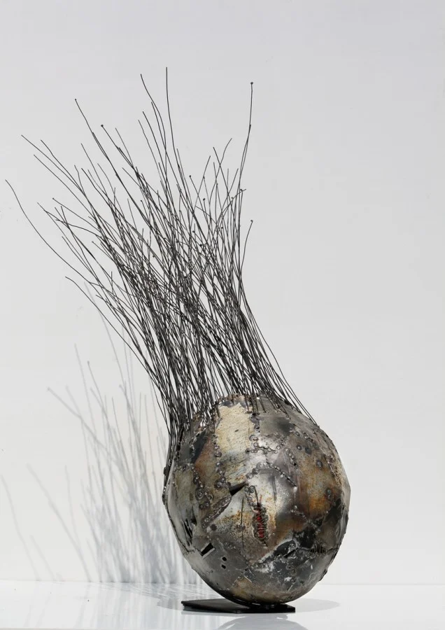 La Costantini Art Gallery ospiterà per la prima volta nei propri spazi, la mostra personale di Andrea Cereda. Le sculture di Cereda sono realizzate principalmente con fil di ferro e lastre provenienti da bidoni consunti, scoloriti e arruginiti che a volte subiscono un ulteriore trattamento di combustione, che conferisce alla lamiera un aspetto brunito con insolite e imprevedibili maculazioni cromatiche. In mostra saranno presenti due cicli di opere: “Metamorphosis” e “La parte sommersa del se”. Il primo ciclo trova riferimento a forme arcaiche e primordiali che possono essere lette sia come antichi meteoriti, sia come remote molecole o, ancora, come bozzoli sul procinto di schiudersi alla vita; sul guscio esterno si notano distintamente cuciture, punzonature e saldature dall’aspetto volutamente grezzo e non definito che concorrono, insieme alla lamiera combusta, a realizzare una superficie vibrante di colori e materia. Invece il ciclo “La parte sommersa del se” è composto da scheletri di scarne e semplici barche, a raffigurare dei relitti quali sinonimi delle questioni irrisolte che ognuno di noi porta dento di se. L’essere realizzate con dei materiali di recupero, mette in stretta connessione filologica l’aspetto di queste sculture con il loro significato intrinseco, infatti, così come appaiono usurate, arruginite e abbandonate, allo stesso modo potrebbero apparire altrettanto logore, deteriorate e dimenticate tutte quelle problematiche che si sono inabissate sotto le nostre coscenze.