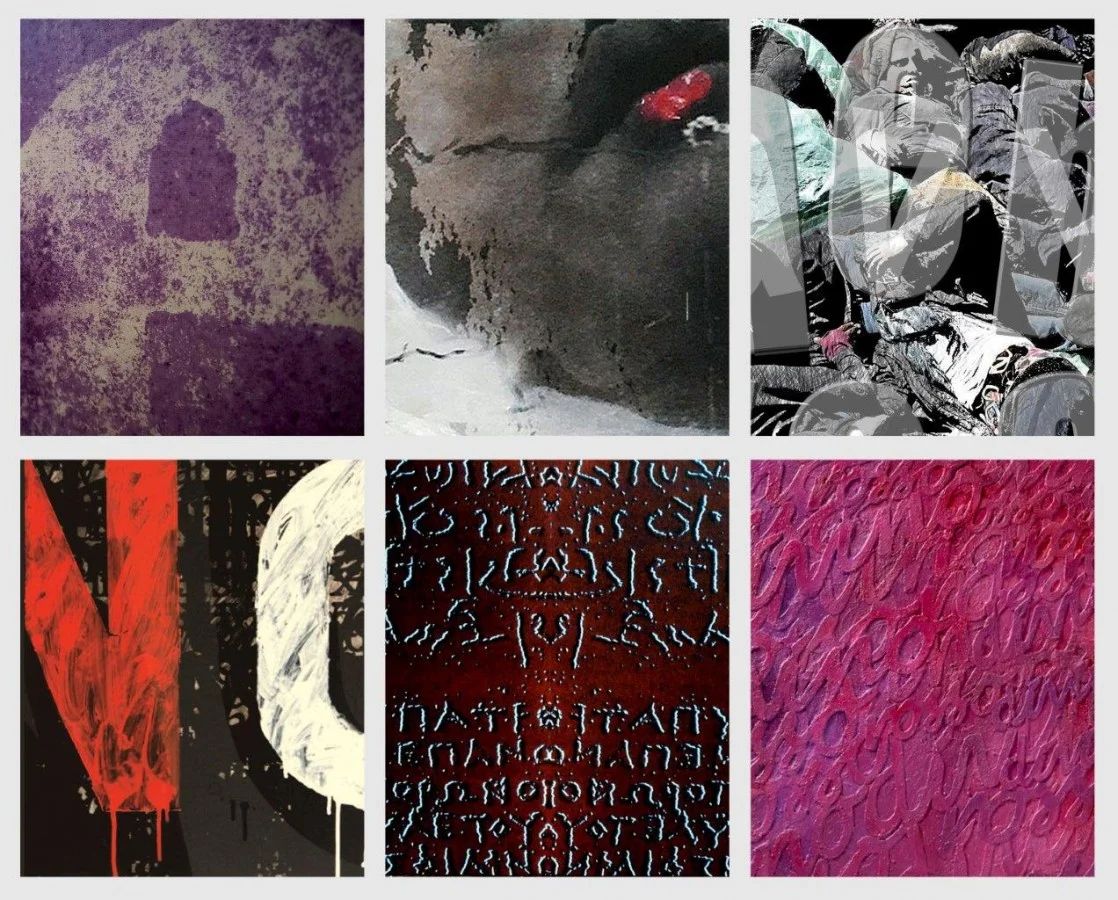 sei artisti che si confrontano sulla specifica peculiarità di inserire nelle proprie opere parole, lettere numeri.