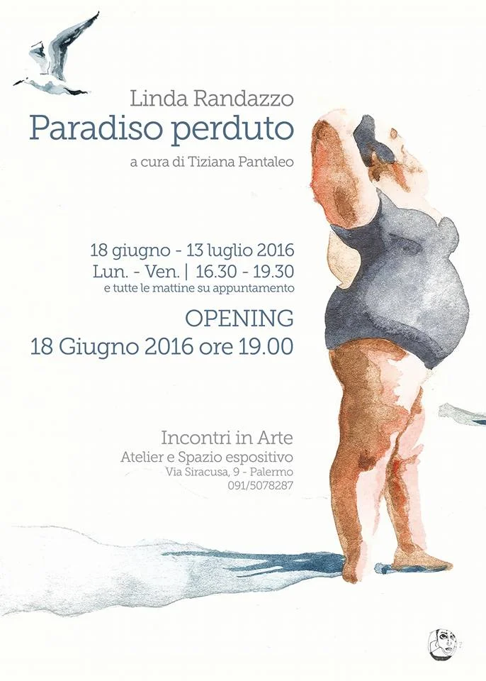 Da sabato 18 giugno l’atelier e spazio espositivo di Valeria Cacioppo “Incontri in Arte” (via Siracusa 9) ospita la personale di Linda Randazzo dal titolo Paradiso Perduto, a cura di Tiziana Pantaleo. La pittrice palermitana presenta una raccolta di opere inedite, alcuni oli su tela e una serie di acquerelli, realizzati nell’ultimo anno appositamente per questa mostra. Lavori che nascono come omaggio al legame assoluto che ha con il mare, e le infinite emozioni che questo elemento è capace di evocare. L’artista lascia per un attimo la sua posizione da ritrattista, per dedicarsi alla creazione di alcuni paesaggi in cui si mischiano le atmosfere di ieri e di oggi, e che sembrano uscire dai nostri ricordi o dagli album di famiglia. Le ambientazioni sono le spiagge e i circoli balneari, popolati da bagnanti, bambini, pescatori, surfisti e gabbiani. Il titolo prende origine da una vicinanza emotiva con il poema epico Paradiso perduto di John Milton, il più grande rappresentante della letteratura inglese dopo Shakespeare, in cui è trattato un argomento intenso come la Cacciata dei progenitori dall'Eden. Un “dramma cosmico” che affronta temi profondi e ancestrali, e che dopo 350 anni dalla sua pubblicazione, rimane un’opera di incredibile modernità. Linda Randazzo si lascia ispirare dal tema e lo interpreta poeticamente; mutuando il senso malinconico della perdita, mette in atto uno slittamento spazio-temporale proiettando questo sentimento nei suoi luoghi, manifestando la volontà di non arrendersi e rivelando la capacità di ritrovare ciò che si è perduto… La mostra resterà aperta fino al 13 luglio, visitabile dal lunedì al venerdì dalle 16:30 alle 19:30, e tutte le mattine su appuntamento. Durante l’inaugurazione la casa editrice Glifo presenterà il terzo volume di “Betulla”, una collana di libretti d’artista per appunti dedicati all’annotazione e al rapporto fra disegno e parola; Dopo due volumi monografici questa è la prima Betulla tematica, dedicata all'affascinante mondo della danza, illustrata da 8 artisti, tra cui Linda Randazzo. BIO: Linda Randazzo (Palermo, 1979) pittrice, illustratrice, scenografa, costumista, e stilista di moda, ha studiato scenografia all’Accademia di Belle Arti di Palermo e a Milano, dedicandosi per lungo tempo al teatro. Dopo una serie di esperienze, incontra la pittura e se ne innamora. Dipingere diventa allora un bisogno costante. L’autrice assimila la pittura siciliana, prendendone le fortune e le sventure. Fondamentalmente ritrattista, dipinge volti sconvolti dall’esistenza, con quella sincerità brutale, che si mitiga nel disegno - immediato e genuino - e che trascende negli acquerelli, leggeri e sublimi. Vive e lavora in Sicilia. INFO: Linda Randazzo - PARADISO PERDUTO a cura di Tiziana Pantaleo inaugurazione sabato 18 giugno 2016, ore 19 fino al 13 luglio da lunedì a venerdì 16:30 - 19:30 le mattine su appuntamento Incontri in Arte Atelier e Spazio Espositivo via Siracusa 9 - Palermo 091/5078287