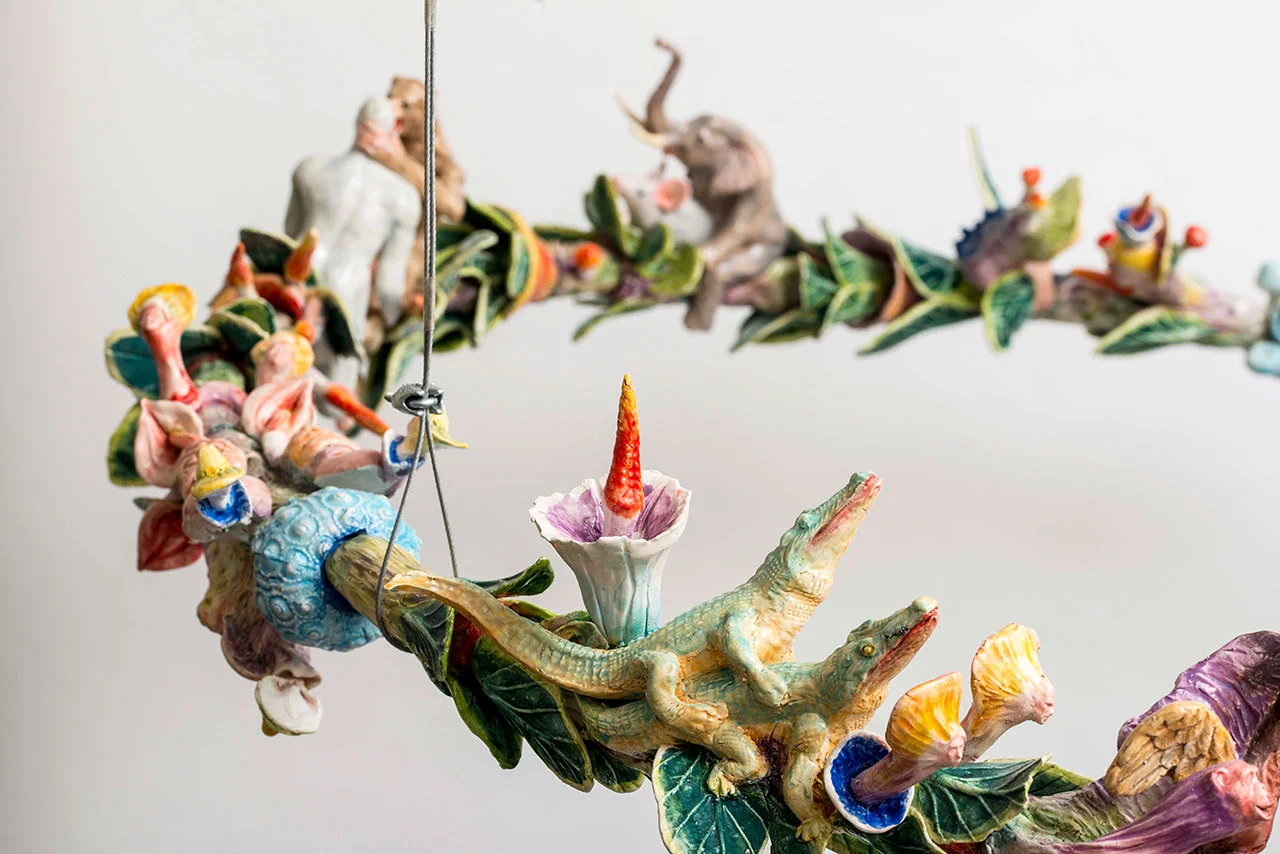Sono sempre valide le distinzioni, per meglio comprendere in arte. Secondo tale modo di procedere (che ha numerosi esempi illustri, come Contini che differenziava totalmente Dante da Petrarca, o Worringer che sezionava l’astrazione e l’empatia nell’arte), ci sono artisti lineari o multiversi. Simone Bertugno appartiene irrimediabilmente al secondo tipo. Di fronte le sue opere occorre essere sempre ben disposti nei confronti della meraviglia, di un proliferare maiuscolo e indomabile, di un eccesso che, per essere maggiormente efficace, si dispone su modelli provenienti anche da un’antichità curiosa e vorace. Le immagini di Venere sono estremamente varie nell’antichità. Da Cipride a Callipigia, tutte le versioni hanno unito il sesso alla bellezza, alla moltiplicazione gioiosa dell’espansione. Venere, nelle parole di Lucrezio, “è l’unico elemento che, quanto più ne possiedi,/ più il petto ne arde di cupidigia infinita”: le parole del poeta testimoniano di un piacere che solo tanto tempo dopo è stato castigato, infatti ardore, legato al corpo, e ardimento, relativo alla conoscenza, hanno la medesima origine. Quest’ultima opera di Simone Bertugno testimonia un passaggio: da un proliferare regolato e consequenziale, a un allargamento dei campi desideranti (direbbero Deleuze e Guattari); questo l’erotismo profondo di questa ricerca, che attraverso le combinazioni dei corpi cerca le leggi di attrazione degli elementi. Nelle opere precedenti si poteva assistere a una germinazione ordinata e consequenziale, ora invece c’è una proliferazione incontrollabile. Le associazioni avvengono su piani regolati più dal capriccio e dalle possibilità, che dalle leggi di natura. Essa, comunque, nel suo procedere evolutivo, con gli anfibi, non ha tralasciato l’intervallo tra animali terrestri e pesci, e con le varie specie ugualmente ha coperto lo spazio che va dal terrestre al volatile, e poi da animale a vegetale, a minerale. C’è tutto un incrociarsi, un mescolarsi, un corrompersi, tale che la legge dell’incrocio e dell’incontro sembra essere una costante, suprema come la sopravvivenza stessa. E’ come se la natura volesse sperimentare se stessa, e, realizzando incroci inediti, generasse, attraverso nuove esperienze e commistioni, nuove creature. Le creature viaggiano eroticamente. Dal Ratto delle Sabine al complesso di Edipo, da sempre si sa che la sopravvivenza è legata al dialogo tra mondi differenti, poiché si può amare solo il diverso, e più lo si cerca lontano, più cresce la sapienza e il godimento. A questa legge non si può sottrarre neanche l’arte. Con Henry Miller: “Le creature umane formano una strana fauna, una strana flora. Da lontano paiono trascurabili, da vicino possono sembrare brutte e cattive. Ma soprattutto occorre che abbiano intorno aria, spazio sufficiente -spazio, anche più che tempo”. Nelle parole dello scrittore fauna e flora, spazio e tempo si mescolano. In questa mostra di Simone Bertugno siamo passati da una produttività plausibile a uno spazio leibniziano, dalla retta al cerchio, con una demoltiplicazione di possibilità che sorprende quanto (quando) genera. Lo sperimentare per Simone Bertugno è comunque erotico, e copre anche lo spazio che va tra il curiosum (il fenomeno raro, il prodigio) e l’amore per le infinite ramificazioni e diramazioni della fantasia, che in natura tranquillamente e regolarmente diventa conoscenza: non c’è attrazione maggiore di quella che unisce desiderio e sapienza.