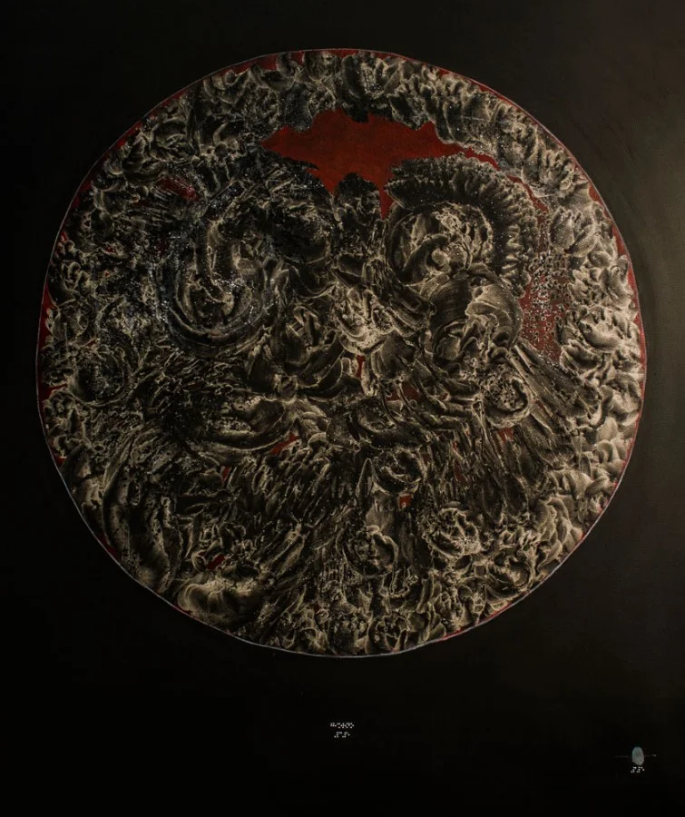 “In principio Dio creò il cielo e la terra. La terra era informe e deserta e le tenebre ricoprivano l'abisso e lo Spirito di Dio aleggiava sulle acque.” Iniziano così i primi due versetti del libro della Genesi, nonché incipit dell'intera Bibbia e della Torah da cui Paul Alex Samaniego ha tratto ispirazione per questo progetto inedito che presenta a Spazio Menexa. Origo, nel cui nome troviamo già la risposta alla sua ricerca, è una mostra composta da quattro tele di grandi dimensioni e da un video in cui traspare il confronto tra il caos iniziale e quello dei giorni nostri in un parallelo di continua mediazione tra il tormento dell’artista e quello del mondo in cui viviamo da cui viene naturale domandarsi se Paul Alex Samaniego ci parli dell'inizio o della fine del mondo. Questa è una delle domande che ci poniamo di fronte alle tele dell'artista in cui coesistono caos e quiete dove l’artista ripercorre la creazione di questo mondo all'origine della perfezione, ed inserisce tutta la complessità dell'evoluzione nel cerchio della vita. Balza all’occhio, infatti, la disposizione dei tratti all’interno di quello che potrebbe apparire come un elemento cellulare ispirato all’evoluzione dello zigote che attraverso la blastocistogenesi genera blastomeri totipotenti con cui l’artista, forse, vuole sottolineare le potenzialità infinite dell’individuo che spesso vengono dimenticate o indirizzate verso l’autodistruzione. La centralità dei dipinti che al primo impatto ricordano uno scudo antico racchiude in se tutta la forza che nella sua circolarità intrisa di apparente caos rimane coesa, a difesa delle tenebre che la avvolgono e ai cui estremi l’energia rappresentata dal colore lotta per la difesa di questa idea di identità, mentre al contempo l’energia incontrollata e inconsapevole apre squarci all’interno del disco minandone l’integrità stessa. La forza di queste opere viene esaltata dalla realizzazione eseguita con componenti particolarmente significativi come il carbone, la cenere, la terra, la tempera, la colla arabica e lo smalto acrilico, giustapposti su un supporto di ecopelle e contaminati dal titolo dell’opera scritto in Braille quasi a significare che una lettura completa della stessa possa avvenire solamente con un grado di conoscenza elevato.