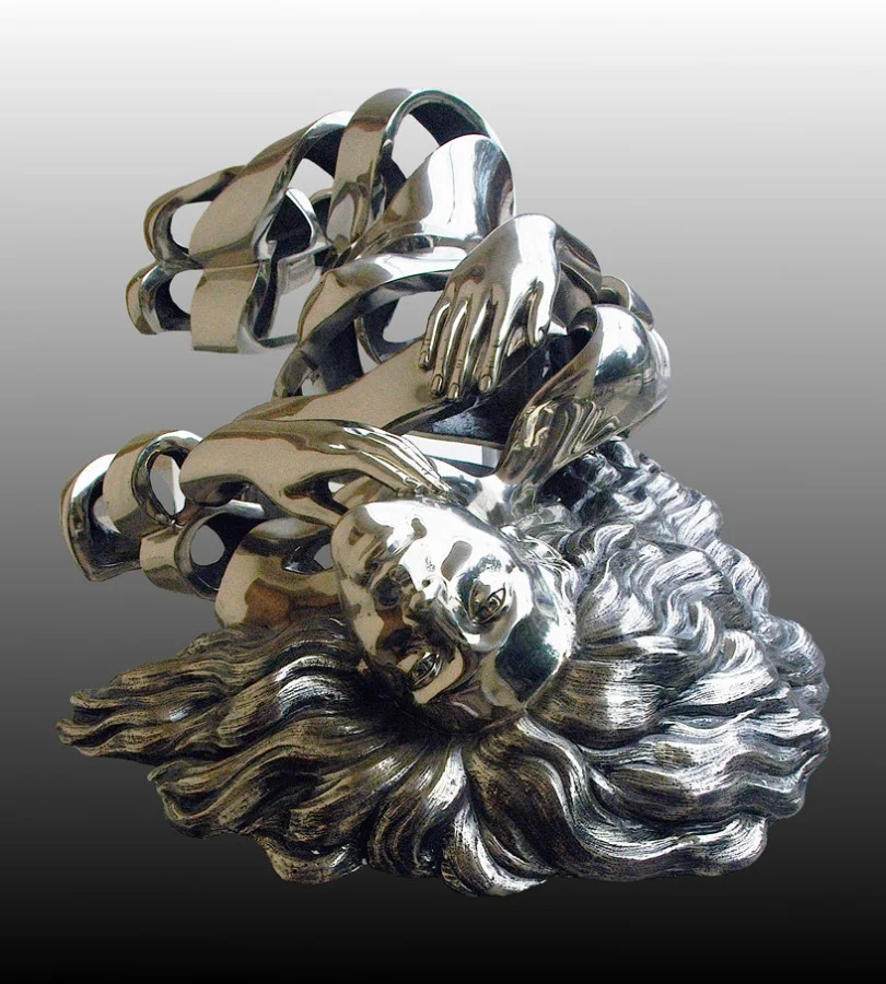 Two master spiral-shaped sculptures will be on display inside the Embassy, as well as impeccable style of paintings. The Spiral attibute is a recognition to Piaia for the innovative idea of the latest sculptural creations. Built using statuary marble or bronze casting through lost wax processes, the statues are created with the face, the hands and the feet, where the typical Piaia executional skills stand out. This world premier innovation consists in the creation of the body: the volume structure is built around a double helix which wraps around itself; with a “full” visual effect in which the form is underlined through a coil, while the void appears suddenly, leaving room for imagination. This is a very difficult job, attempted by many but never actually realized, characterized by a precise study of solids and voids, realized in a perfect balance of matter that does not need any support. These statues employ strange perception and perspective, and seem impossible to achieve in reality, furthermore, they take us back to a strong mathematical component by the master who inspired Piaia: Dutch graphic engraver Maurits Cornelis Escher, 1898-1972. His works unite the classical to the dynamic, proving through these (in addition to execution ability), that he can shape art with novelty, and not so much to create completely new artworks. Works presented: “Over” Bronze work L.118 cm. This statue is created with an original metal alloy that amalgamates bronze to one part of steel; the overall view creates a futuristic effect, involving our senses and transporting us in flight towards the unreal towards, the dream. “Mudra” Bronze work A.97 cm. The embracing spiral defines and outlines the soft feminine features; the golden coating on the outside and black on the inside, on top of enhancing the flexible forms of this bronze statue, brings us back to the “Assurfivo" style: unmistakeable painting technique created by Roberto Piaia. Only a great compositional experience and a deep knowledge of the subject, have allowed Roberto Piaia, after years of intense research and study, to realize his creations through drawings, sketches and oils on canvas with bodies outlined through a spiral.