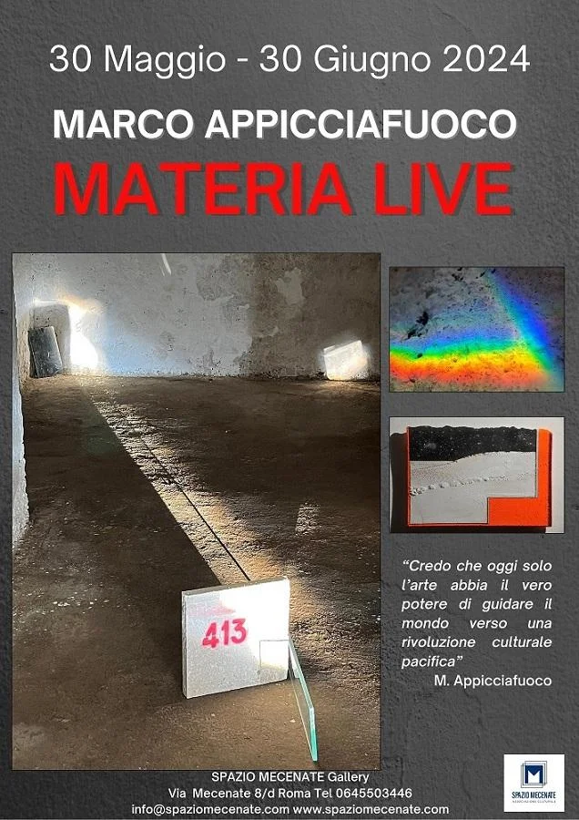 Torna nella Capitale l’artista teramano Marco Appicciafuoco con la sua personale “Materia Live” allo Spazio Mecenate, a Via Mecenate 8/d a Roma, dal prossimo 30 maggio e fino al 30 giugno 2024. Marco Appicciafuoco è un artista complesso, concepisce l'arte come un modo d'essere più che d'apparire, attento alle tematiche ambientali. Artista completo, padroneggia diverse tecniche, trasformando la ceramica in scultura e design, e fondendo spesso disegno, pittura e scultura, fonte d’ispirazione sempre la sua terra d'origine, l'Abruzzo. La mostra "Materia Live" offre un viaggio emozionante in un percorso di rinascita, attraverso la luce e la materia, con strutture complesse multimateriale, che nascondono simbolicamente la compenetrazione tra la storia dell’uomo (Argilla), l’alterità (Riflessi), la spiritualità (la luce) portando la speranza (l’arcobaleno). Circa 22 le opere in mostra che spaziano dalle stampe su alluminio, alla penna pilot nera su carta quadrettata, dal semire, engobbio bianco, vetro, led, al gres, smalti, acrilici, acciaio fused glass, fino acciaio reflex, plastica crystall e vetro, in un mix & match di materiali di indiscusso impatto visivo ed artistico, che caratterizza il gesto artistico di Appicciafuoco. Come dichiara la critica d’arte Maria Chiara Strappavecchia: “Marco Appicciafuoco è un artista abruzzese, all’inizio della sua carriera per lo più scultore in ceramica, introverso e di grande capacità espressiva, considerato vicino alla corrente italiana della Transavanguardia, così individuata dal critico d’arte Achille Bonito Oliva. Egli combina a questa tendenza artistica la sua sensibilità per le emergenze climatiche, gli equilibri ecologici e la critica ambientalistica propria del nostro tempo”. Così si esprime, invece, la storica dell'arte Chiara Orizio: “La materia è in potenza, come sosteneva Aristotele, e l’atto dell’artista la trasforma in qualcosa d’altro, in un’opera d’arte, dandole un senso, un significato, trasformandola in portatrice di messaggi. Il lavoro su questa materia informe, che viene elaborata, risente del background dell’artista, del suo percorso di ricerca e conoscenza, delle sue esperienze di vita e del contesto, ambientale e sociale, in cui vive”. Bio Marco Appicciafuoco Nato il 19 settembre 1970 a Teramo, Marco Appicciafuoco si diploma all’Istituto Statale d’Arte F.A. Grue della città di Castelli con specializzazione in scultura ceramica sotto l’egida dell’allora direttore Vincenzo Di Giosafatte. Su sua segnalazione avviene l’esordio espositivo del giovane artista in Svizzera, Francia, Spagna e Italia. Quale sensibile e attento osservatore, affina la propria attitudine artistica grazie al fermento culturale del periodo e alla partecipazione ad Arte Fiera di Bologna fra il 1992 e 1995 che lo porta ad entrare in contatto con artisti del calibro di Michelangelo Pistoletto, Sandro Chia, Enzo Cucchi, Luigi Ontani. Con essi realizza opere in ceramica che oggi sono ritenute tra le più importanti della corrente artistica definita come Transavanguardia, dal critico Achille Bonito Oliva. In seguito Marco Appicciafuoco frequenta il corso di scultura all’Accademia di Belle Arti dell’Aquila dove si diploma, e collabora nel 1995 alla rassegna pescarese “Fuori Uso”. Da queste conoscenze e contatti artistici Appicciafuoco matura la sua ricerca artistica che trasforma la ceramica in scultura, con la possibilità di essere anche oggetto di design, mentre il disegno e la pittura si fondono in una fluidità di creazione che nel 2000 si arricchisce anche con l’uso della luce. La sua carriera cresce sensibilmente dal 2001 con una serie di mostre collettive e personali, come “Silicato Landscape”, inaugurata nel 2001 nel Palazzo del Comune a Caramanico Terme e riproposta nello stesso nella Chiesa di Sant’Agostino ad Atri e nel 2002 “Silver & Dust” nel Palazzetto dei Nobili a L’Aquila. Inoltre si ricorda la retrospettiva “….di naturali esperienze” al Palazzo Caetani di Cisterna di Latina (che comprende 40 lavori prodotti dal 1995 al 2007), dove principale fonte di ispirazione e ricerca è la natura, quella della sua terra d’origine, l’Abruzzo, e l’arte diviene un mezzo di denuncia per le violenze fatte al paesaggio dall’uomo. Nel 2010 Marco Appicciafuoco riceve il 55° Premio Termoli a cura di Miriam Mirolla con “Light Flowers”, esposte in una mostra curata da Franco Speroni presso la Galleria Hybrida di Roma. È questo che gli offre visibilità e considerazione nei più significativi ambienti dell’arte. Nel 2011 partecipa nel padiglione Abruzzo alla 54° Biennale di Venezia (dal 4 giugno al 27 novembre) intitolata “ILLUMInazioni” curata da Vittorio Sgarbi. Nel 2014 Marco Appicciafuoco propone “Hight Lights” nell’ecomuseo delle acque a San Pietro Isola del Gran Sasso (Teramo) a cura di M. Nardinocchi. La sua conoscenza di Ettore Sottsass e Johanna Grawunder lo ha portato a ricevere consensi, premi e riconoscimenti professionali. Con Daniela Faiani, la sua compagna di vita, condivide le molteplici collaborazioni ed esperienze artistiche, vivendo e lavorando nella cittadina di Castelli. Nel 2019 si è aperta alla Fortezza di Civitella del Tronto la mostra “Sealed Draw”, a cura di Massimo Pasqualone, nell’ambito della rassegna “La Fortezza dell’Arte”, patrocinata dal Comune di Civitella del Tronto, con il catalogo edito da Ricercheeredazioni. Nel settembre 2022 a Castelli nella Galleria civica è stata esposta la parte conclusiva di tale mostra con disegni realizzati mediante la tecnica dell’ ‘Action drawing’ , nuovi disegni sigillati, in cui i tratti non si incrociano mai tra loro e che richiedono grande capacità motoria del corpo umano (polso, gomito e spalla) nel realizzarli. Sono opere che rasentano il limite del concetto di installazione artistica. Inaugurazione 30 Maggio 2024 ore 19.00 alla presenza dell’artista, presentazione a cu