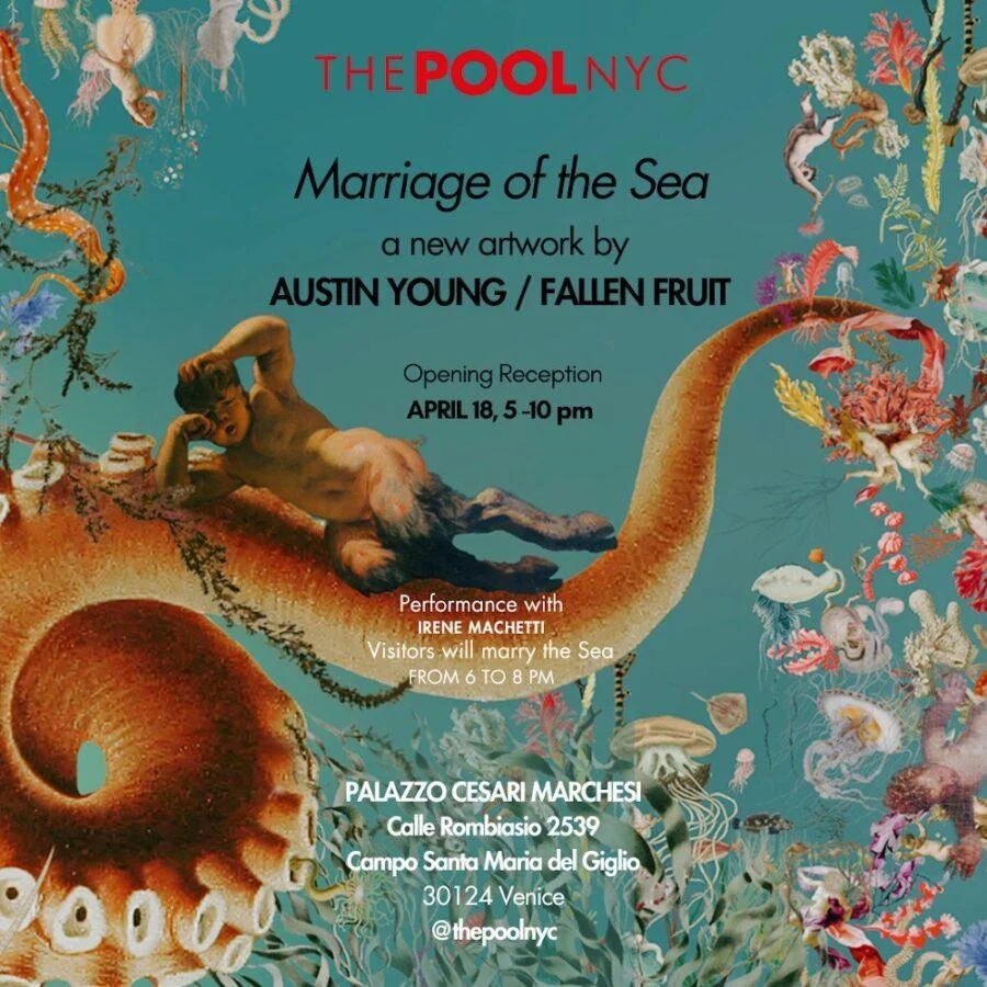 Comunicato Stampa Austin Young/Fallen Fruit Marriage of the Sea (the Rape of Venice) 18 aprile – 30 giugno 2024 Opening Reception: 18 aprile 17:00 - 22:00 Opening Performance: Irene Machetti realizzerà una cerimonia speciale in cui i visitatori sposeranno il mare, 18 aprile 18:00 – 20:00 THE POOL NYC Palazzo Cesari Marchesi, Venezia In occasione della Sessantesima edizione della Biennale di Venezia, THE POOL NYC presenta "Marriage of the Sea (The Rape of Venice)", la mostra personale di Austin Young / Fallen Fruit a Palazzo Cesari Marchesi. "Marriage of the Sea (The Rape of Venice)" tesse un affascinante racconto visivo e concettuale sul legame ancestrale tra la Serenissima e l’Adriatico. Austin Young / Fallen Fruit realizza un inedito ed immersivo wall covering di grandi dimensioni creato appositamente per Venezia. Tessuto e tende velate rivestono le pareti e le finestre del palazzo. "Come artista, cerco di creare un'esperienza sublime che cambia le sensazioni una volta entrati nella stanza. L'obiettivo è di condividere le mie percezioni attraverso un'avventura estetica", afferma Young. Il lavoro di Austin Young è insieme celebrazione e ritratto di Venezia, è un collage di fotografie originali dell'artista e di immagini tratte dagli archivi durante le sue visite nei musei, nelle chiese e nei palazzi della città. L’artista americano spiega: "Per centinaia di anni, nel giorno dell'Ascensione, è stato compiuto un sacrificio. Si gettava in acqua un glorioso anello d'oro che affermava il dominio di Venezia sull'Adriatico. La magia di questo sacrificio divino è stato così potente da durare per secoli. Tra la diminuzione della popolazione, l'incrostazione dei canali, le maree sempre più alte e la perdita della comunità a causa degli affitti a breve termine, è tempo di rievocare questo antico voto: "Desponsamus te, mare, in signum veri perpetuique dominii! Ti sposiamo, mare, come simbolo del vero e perpetuo dominio!". Unitevi a AUSTIN YOUNG / FALLEN FRUIT e a THE POOL NYC per l'evento di apertura del 18 Aprile, dove è previsto un progetto partecipativo con l'artista Irene Machetti. I visitatori sono invitati a sposare il mare. Viola Romoli e Luigi Franchin, direttori di THE POOL NYC, affermano: "Questa coinvolgente installazione d'arte, sublime e immersiva rappresenta un'immagine allegorica di Venezia sedotta dal turismo, una città che ha sacrificato il suo capitale culturale e l’ambiente per avidità. Un’accurata ricerca della bellezza, dell’identità e delle norme sociali permea il lavoro dell’artista, conferendogli una profondità e una rilevanza che fa presa con il pubblico di tutto il mondo.” * Segui gli stickers THE POOL NYC per raggiungere Palazzo Cesari Marchesi. AUSTIN YOUNG/FALLEN FRUIT Austin Young è un artista multidisciplinare il cui stile caratteristico interpreta un linguaggio visivo sfumato di bellezza, cultura pop, storia dell'arte, arte popolare e trasgressiva esuberanza underground. L'interesse di Young è quello di illustrare le qualità sublimi dell'umanità che ci fanno progredire, sia attraverso modalità fotografiche e video di ritrattistica performativa, sia con un impegno per una visibilità assertiva della cultura queer e una cultura di condivisione delle risorse basata sulla comunità. Fallen Fruit è una collaborazione artistica concepita originariamente nel 2004 da David Burns, Matias Viegener e Austin Young. Dal 2013, David e Austin hanno continuato il lavoro di collaborazione. Gran parte del lavoro che creano è legato alle idee di luogo e di conoscenza generazionale, e riecheggia un senso di connessione con qualcosa di molto primordiale: la nostra capacità di condividere il mondo con gli altri. Tra le opere permanenti e le mostre museali più recenti ricordiamo il Chiostro del Bramante a Roma, l'Accademia Carrara di Bergamo, l'Orto Botanico di Palermo, il V&A di Londra, il LACMA di Los Angeles, Manifesta 12 a Palermo, la Triennale NGV di Melbourne. www.austinyoung.com - www.fallenfruit.org Instagram: @austinyoungforever @fallen_fruit ABOUT THE POOL NYC THE POOL NYC è una galleria d'arte contemporanea fondata a New York nel 2009, specializzata in artisti moderni e contemporanei e vetro di Murano. A novembre 2017 THE POOL NYC apre una sede permanente a Palazzo Fagnani Ronzoni a Milano. In occasione della Biennale di Venezia la galleria organizza una grande mostra d'arte in laguna. La galleria si distingue per la ricerca di espressioni artistiche innovative e la riscoperta di artisti fondamentali per la Storia del ‘900. THE POOL NYC si impegna a offrire una piattaforma inclusiva e diversificata, accogliendo una vasta gamma di medium artistici, tra cui pittura, scultura, fotografia e installazioni. Con un'attenzione particolare alla sperimentazione e alla riflessione critica, la galleria promuove dialoghi significativi sulle questioni contemporanee attraverso l’arte. UFFICIO STAMPA/ PRESS OFFICE: RP-Press www.rp-press.it - E: press@rp-press.it Instagram @rp_press Contact: Marcella Russo - M. 0039 349 3999037 INFO THE POOL NYC: www.thepoolnewyorkcity.com - E: info@thepoolnewyorkcity.com Instagram @thepoolnyc SCHEDA TECNICA: Titolo: Marriage of the Sea Artisti: Fallen Fruit by Austin Young Opening:18 Aprile dalle ore 17 alle 22 Opening performance: Irene Machetti dalle ore 18 alle 20, Marry the sea Date: 18 aprile – 30 giugno 2024 Dove: PALAZZO CESARI MARCHESI Calle Rombiasio 2539, Campo Santa Maria del Giglio, 30124 Venezia Vaporetto: Giglio Orario: 11-13/14-19 - Chiuso il martedì Sponsor tecnico: PROMEMORIA