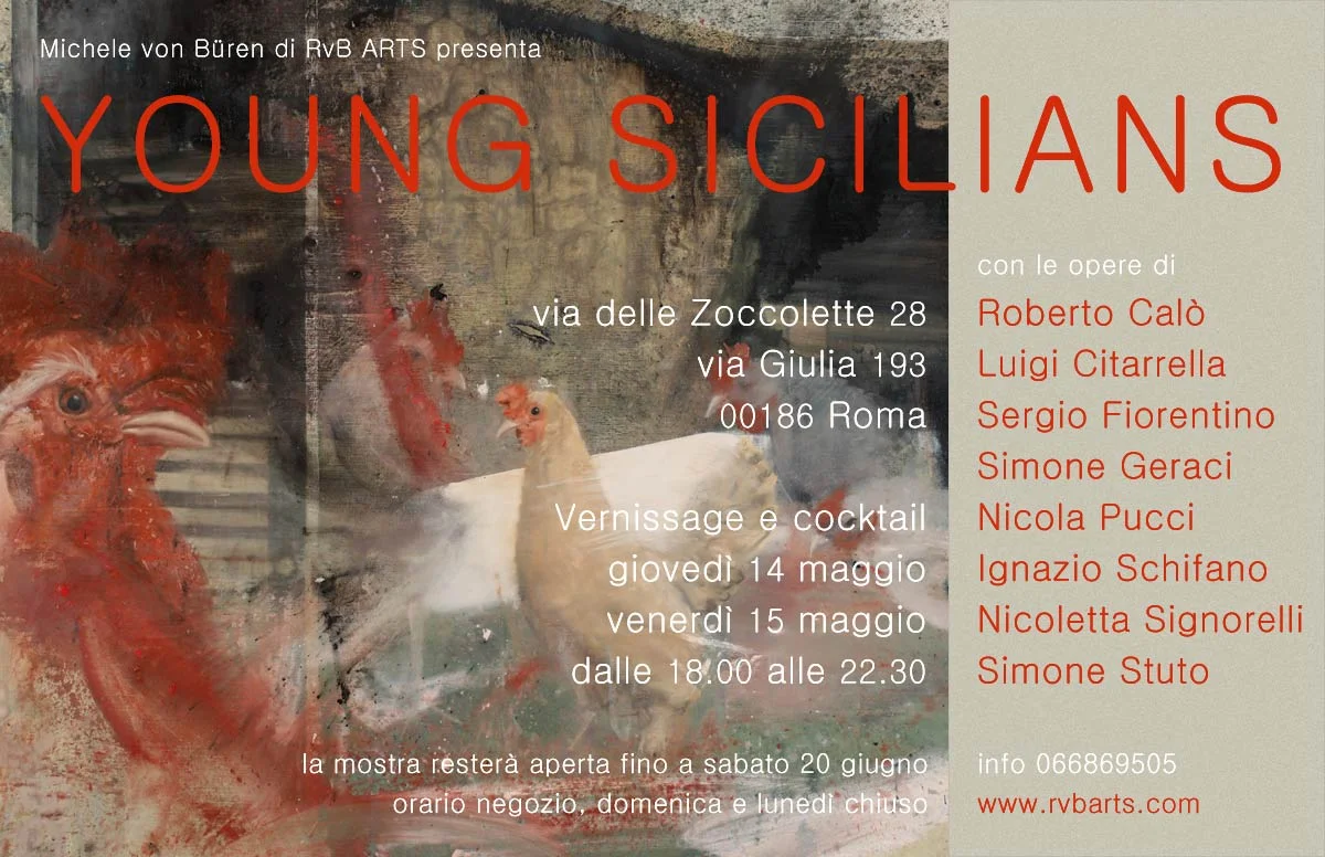 La galleria RvB Arts con la sua politica di Accessible Art inaugura a Roma in via delle Zoccolette e via Giulia YOUNG SICILIANS con le opere di Roberto Calò - Luigi Citarrella - Sergio Fiorentino - Simone Geraci Nicola Pucci - Ignazio Schifano - Nicoletta Signorelli - Simone Stuto Vernissage e cocktail: giovedì 14 e venerdì 15 maggio 2015 dalle 18.00 alle 22.30 la mostra resterà aperta fino a sabato 20 giugno orario negozio; domenica e lunedì chiuso Curatrice e organizzazione: Michele von Büren Testo critico: Viviana Quattrini RvB Arts - Via delle Zoccolette 28, 00186 Roma Antiquariato Valligiano - Via Giulia 193, 00186 Roma info 06.6869505 www.rvbarts.com In linea con la tradizione di una terra tanto irruenta quanto enigmatica, atmosfere luminose, scenari onirici o carichi di mistero e indagine introspettiva caratterizzano le opere degli otto giovani talenti siciliani. Tra dipinti e sculture, la tecnica si mette al servizio dell'immaginazione in una mostra che vuole introdurre a Roma una nuova corrente di artisti, capeggiata da Nicola Pucci, che stanno già facendo parlare di loro. Roberto Calò è nato a Palermo nel 1985. Consegue il diploma presso l'Accademia di Belle Arti di Carrara nel 2012. Il pittore intende l'opera come una sorgente, come una manifestazione di energia, dove la luce ha un ruolo decisivo. Luigi Citarrella è nato a Palermo nel 1981 ed è stato scelto come artista per la Biennale di Venezia di quest'anno. Le sue sculture in resina bianca nascono da un percorso di sperimentazione sulla materia e si distinguono per una forte componente a carattere sociale. Sergio Fiorentino è nato a Catania dove si è diplomato presso l'Accademia di Belle Arti. Nelle sue opere le figure femminili, come degli ologrammi, si sdoppiano e sembrano sospese in dimensioni parallele. Simone Geraci nasce a Palermo nel 1985. Pittore, incisore ed illustratore collabora attivamente con gallerie nazionali e con diverse case editrici palermitane. In opere ad olio su ardesia, figure vengono accostate a paesaggi in suggestive visioni interiori. Nicola Pucci vanta una tecnica sapiente e consolidata che ha già attirato l'attenzione di commercianti d'arte di fama mondiale, come l'americano Larry Gagosian, e di intenditori come lo è stato Carlo Bilotti, rinomato collezionista d'arte. Ignazio Schifano nasce a Palermo. Inizia la sua formazione presso l'Accademia di Belle Arti della sua città per poi trasferirsi sei anni a Londra. Attraverso tecniche che derivano dal restauro e da una preparazione e scelta accurata dei materiali la sua pittura acquista il fascino del tempo. Nicoletta Signorelli nasce nel 1975 a Palermo dove si è diplomata in pittura all'Accademia di Belle Arti. Gli ultimi suoi dipinti traggono ispirazione da famose opere d'arte. Il risultato è una serie di quadri vibranti che si contraddistinguono per i colori decisi e per i colpi di pennello energici. Simone Stuto nasce a Caltanissetta nel 1991. Consegue nel 2014 il diploma in pittura presso l'Accademia di Belle Arti di Palermo. Nelle opere in mostra, inchiostri su carta Ingres, le figure di Stuto si contraddistinguono per un tratto incisivo di ascendenza espressionista. RvB Arts è una galleria romana che promuove l'Accessible Art. Scova talenti emergenti e organizza mostre ed eventi con lo scopo di far conoscere l'arte contemporanea in maniera divertente ed informale, rendendola anche 'abbordabile' da un punto di vista economico. Antiquariato Valligiano è una nota galleria romana che dal 1982, nella rinomata via Giulia, propone antiquariato italiano delle regioni alpine e non solo, tra cui mobili di ogni tipo e oggetti allegri e raffinati. Michele von Büren: gallerista di RvB Arts; www.rvbarts.com - info@rvbarts.com Antiquariato Valligiano: via Giulia 193, tel e fax: 06.6869505 Ufficio stampa: Caterina Falomo; tel 346.8513723; caterina@pennarossapresslab.it