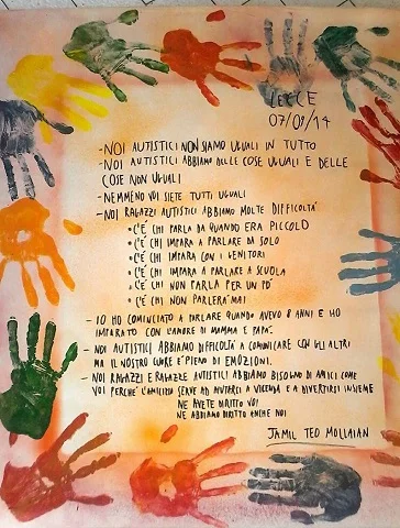 Giovedì 2 aprile è la Giornata Mondiale dell’Autismo istituita nel 2007 dall’ONU, dove si invitano tutti gli Stati membri ad adottare misure di sensibilizzazione, a tutti i livelli della società, per favorirne la diagnosi e l'intervento precoce. L'iniziativa Light it up blue, infatti, prevede una particolare illuminazione dei luoghi simbolo di molte città, proprio per sensibilizzare la popolazione sul problema dell'autismo, quindi il 2 Aprile illuminiamo di blu le nostre case e gli edifici pubblici, nella speranza di risvegliare le coscienze sulla tematica dell’autismo e di proiettare un fascio di luce nel buio del silenzio che avvolge tale patologia. A chi aderisce e accende una luce blu, viene chiesto di fotografare l’angolo illuminato per poi esporre sulla bacheca personale di facebook la foto scattata. La pubblicazione di ogni foto sarà la conferma d’aver aderito. Molte sono le attività e gli eventi della Giornata che contribuiscono ad aumentare e sviluppare le conoscenze sull'autismo Le Ali di Pandora organizzano un incontro aperto al pubblico, alle 18,30 nella sala conferenze dell'Ex Conservatorio di Sant'Anna, Michela Del Tinto e Teo Mollaian gestiranno l'incontro: “Tutti i colori dell'autismo”, perché come dice Teo: Giovedì 2 aprile è la Giornata Mondiale dell’Autismo istituita nel 2007 dall’ONU, dove si invitano tutti gli Stati membri ad adottare misure di sensibilizzazione, a tutti i livelli della società, per favorirne la diagnosi e l'intervento precoce. L'iniziativa Light it up blue, infatti, prevede una particolare illuminazione dei luoghi simbolo di molte città, proprio per sensibilizzare la popolazione sul problema dell'autismo, quindi il 2 Aprile illuminiamo di blu le nostre case e gli edifici pubblici, nella speranza di risvegliare le coscienze sulla tematica dell’autismo e di proiettare un fascio di luce nel buio del silenzio che avvolge tale patologia. A chi aderisce e accende una luce blu, viene chiesto di fotografare l’angolo illuminato per poi esporre sulla bacheca personale di facebook la foto scattata. La pubblicazione di ogni foto sarà la conferma d’aver aderito. Molte sono le attività e gli eventi della Giornata che contribuiscono ad aumentare e sviluppare le conoscenze sull'autismo Le Ali di Pandora organizzano un incontro aperto al pubblico, alle 18,30 nella sala conferenze dell'Ex Conservatorio di Sant'Anna, Michela Del Tinto e Teo Mollaian gestiranno l'incontro: “Tutti i colori dell'autismo”, perché come dice Teo: “le persone non possono essere cancellate perchè non sono delle matite” Michela Del Tinto è una madre che da anni combatte contro l'ignoranza e la disinformazione, spiega: “L'autismo non è mai il benvenuto in una famiglia. Quando si presenta, sconvolge ogni cellula delle esistenze a cui si accosta, nel momento in cui si rivela offre ad ogni nuovo amico una visione inaspettata delle cose e originali modalità per viverle. Conosco l'autismo da vicino e lo vivo molto intensamente perchè mio figlio è Autistico. L'autismo è visto dai più come un mostro da sconfiggere e non come una parte di universo ancora solo parzialmente esplorata, universo che andrebbe conosciuto, accettato e soprattutto accolto, è questa la motivazione che oggi mi spinge a parlarne e parlarne in maniera distesa e varia rispondendo in modo diretto e comprensibile alle domande che mi verranno rivolte. .” Scrive Teo nel suo profilo fb: “con mia madre sono andato a vedere cosa significato la parola disabile e c'è scritto che la persona disabile è quella persona a cui mancano delle capacita fisiche o mentali. quindi mia madre mi ha spiegato che la parola disabile è una parola che non è un insulto ma una parola che serve a ad informare gli altri che una persona ha bisogno di aiuto perchè gli mancano delle cose. con mia madre ho capito che io posso essere considerato un disabile perchè mi mancano delle capacità ma mia madre mi ha spiegato che se mi mancano delle capacità non vuol dire che con l'impegno non posso raggiungerle il mio autismo oggi non è grave come quello che avevo da piccolo oggi ho raggiunto tante capacità che da piccolo non avevo quindi disabile ero prima e disabile un po' diverso sono oggi ma la gente deve capire che la parola disabile non è brutta. i disabili non devono essere tenuti fuori perchè altrimenti non possiamo migliorare. Michela Del Tinto è una madre che da anni combatte contro l'ignoranza e la disinformazione, spiega: “L'autismo non è mai il benvenuto in una famiglia. Quando si presenta, sconvolge ogni cellula delle esistenze a cui si accosta, nel momento in cui si rivela offre ad ogni nuovo amico una visione inaspettata delle cose e originali modalità per viverle. Conosco l'autismo da vicino e lo vivo molto intensamente perchè mio figlio è Autistico. L'autismo è visto dai più come un mostro da sconfiggere e non come una parte di universo ancora solo parzialmente esplorata, universo che andrebbe conosciuto, accettato e soprattutto accolto, è questa la motivazione c