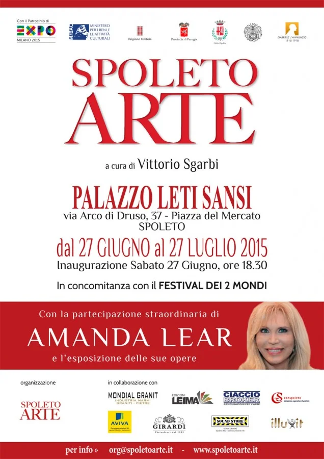 È iniziato il conto alla rovescia per l'apertura ufficiale della grande mostra collettiva di "Spoleto Arte" sotto l'esperta curatela del critico Vittorio Sgarbi e organizzata dal manager della cultura Salvo Nugnes, direttore di "Spoleto Arte", che sarà allestita presso l'elegante contesto nobiliare del Palazzo Leti Sansi, situato nel cuore del centro storico spoletino, nell'antica Piazza del Mercato. L'esposizione verrà inaugurata con un esclusivo vernissage in data sabato 27 giugno alle ore 18.30 e resterà in loco fino al 27 luglio 2015, con ingresso libero al pubblico per le visite. "Spoleto Arte" raduna una selezionata carrellata di opere appartenenti a un circuito di rinomati esponenti del panorama attuale e vuole essere, come definita dal curatore Sgarbi, "un osservatorio sull'arte contemporanea, con l'obiettivo di fare conoscere e riconoscere artisti giovani e meno giovani, dando voce alla loro libera creatività". Tra i partecipanti di spicco si inserisce la vulcanica Amanda Lear, personaggio di innato carisma e appassionata carica vitale, che propone una corposa serie di quadri con tematiche varie di forte espressività e intensa suggestione. L'organizzatore Salvo Nugnes spiega: "La pregevole vetrina storica, artistica e culturale di Spoleto mi è diventata particolarmente cara e negli anni si è instaurato e consolidato un rapporto di forte legame sinergico con l'incantevole comprensorio territoriale spoletino, ricco di secolari risorse preziose. L'opportunità di poter organizzare delle iniziative così di ampio respiro e di elevata risonanza a livello nazionale e internazionale, in concomitanza con lo svolgimento del rinomato Festival dei Due Mondi, è per me un autentico motivo di soddisfazione e gratificazione personale, oltre che professionale". E aggiunge: "Questa edizione di -Spoleto Arte- 2015 sarà arricchita anche dalla seconda edizione del -Premio Margherita Hack- che si terrà in data 28 giugno all'interno del contesto espositivo, che fungerà da simbolica cornice di contorno all'iniziativa. Questo premio da me ideato vuole essere un simbolico ringraziamento a Margherita, per tutto ciò che la sua amicizia sincera mi ha regalato e per il tesoro inestimabile di sapere e di conoscenza, che ha -lasciato in eredità- a tutti quanti noi. Margherita è e sarà sempre la -signora delle stelle-".