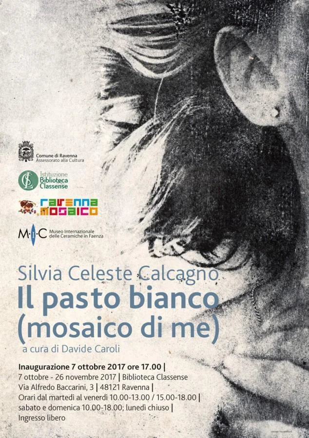 In un rincorrersi di rimandi e citazioni, da The Naked Lunch (il pasto nudo), capolavoro letterario di William Burroughs alla libera e omonima versione cinematografica firmata da David Cronenberg, SCC mette a punto un nuovo importante progetto realizzato per la personale a cura di Davide Caroli negli spazi della Biblioteca Classense di Ravenna, nell'ambito della Biennale di mosaico. La mostra nasce in collaborazione con il MIC Museo Internazionale delle ceramiche in Faenza. L’artista utilizza ancora una volta la ceramica, linguaggio con il quale ha da tempo trovato la sua cifra distintiva e originale ponendolo in dialogo con performance, installazione e fotografia. In questo caso l’indagine si arricchisce di un ulteriore elemento che chiama in causa il mosaico. Silvia Celeste Calcagno, che nel 2015 ha vinto il 59° Premio Faenza con Interno 8 La fleur coupée, composta da infinite tessere, aveva già intuito la potenzialità di questa espressione frammentaria, quasi un cut and up per riprendere ancora il riferimento a Burroughs e al suo modo sperimentale di utilizzare la scrittura. Mosaico come frammento, particolare infinitesimo, dove unendo le tessere si ricompone alla fine l’immagine, ma non la narrazione e neppure l’identità. E SCC lavora, da una parte con il consueto atteggiamento introspettivo, dall’altra con visceralità talora dura e spietata, sulla sua identità di donna, alle prese con l’eterna contraddizione tra corpo, oggetto costringente, limitato, e l’aspirazione a liberarsi dal peso, evadere dal limite, farsi altro. Corpo che è innanzitutto materia, e come tale viene trattato, eppure sfugge dalla tentazione descrittiva, a cominciare dalla rinuncia al colore. L’universo del “mosaico di me” è bianco, acromatico, inessenziale e sfuggente. Ogni volta che tenta l’ascesa verso l’alto, qualcosa di fisico lo riporta a terra. Ne intravvediamo solo i frammenti, altro non è dato. Da qui, dunque, il pasto bianco, installazione che ricompone tessere di corpo, un corpo che si pone innanzitutto come cibo, un banchetto cui chiunque potrà sedersi e mangiare, come nelle tavole imbandite dal maestro del cinema surreale Luis Buñuel . Dice SCC, “bianco come il colore della mia carne, privo del peso specifico di un corpo senza volto -che dunque perde l’identità dell’io per trasformarsi in archetipo- a pezzi, senza un luogo, perso nel vuoto, a volte protetto a volte sporcato dalla manipolazione e dal lavoro sul materiale”. Il pasto bianco, installazione site specific, copre come una pelle parte dello spazio attraverso lastre in gres che sviluppano una tecnica che vede la fusione tra fotografia e materia. Altra installazione in mostra Una storia privata, ulteriore riflessione sul rapporto tra noi e gli altri, con segni ancor più sfuggenti e minimi, di un corpo destinato a lasciare la propria fisicità. Silvia Celeste Calcagno è nata a Genova nel 1974, vive e lavora ad Albissola.Diplomata all' Accademia Ligustica di Belle Arti di Genova. Vince nel 2010 il I Premio Opera Pubblica Festival Internazionale della Maiolica Albissola MuDA Museo Diffuso Albissola Marina, nel 2013 il Premio Speciale Artisti in Residenza Laguna Art Prize Venezia, nel 2013 la Targa del Presidente della Repubblica, 57° Concorso Internazionale della Ceramica d’arte Contemporanea Premio Faenza e nel 2015, prima donna italiana, la 59° edizione del Premio Faenza.Tra le mostre principali: Nerosensibile, Studio Lucio Fontana, a cura di Luca Beatrice, Albissola 2012, Not Me, Musei Civici Imola,a cura di Luca Beatrice 2014, Mood, PH Neutro Fotografia Fine-Art a cura di Luca Beatrice, Pietrasanta2014, GNAM Galleria Nazionale d’Arte Moderna, Roma 2015, Interno 8 La fleur coupée, Officine Saffi, a cura di Angela Madesani, Milano 2015, La sfida di Aracne Riflessioni sul femminile dagli anni '70 ad oggi, Nuova Galleria Morone, a cura di Angela Madesani, Milano 2016, XXIV Biennale Internationale Contemporaine Musée Magnelli, Vallauris 2016.Nel 2017 espone in Corea, In the Earth Time, a cura di Irene Biolchini, Italian Guest Pavillion Gyeonggi Ceramic Biennale Yeoju Dojasesang. Sempre nello stesso anno, presenta IF ( but I can explain ) al Museo d' arte contemporanea Villa Croce, Genova a cura di Alessandra Gagliano Candela, esposto nel settembre 2017 nella Project Room della Nuova Galleria Morone, Milano. Silvia Celeste Calcagno Il pasto bianco (mosaico di me) a cura di Davide Caroli Inaugurazione 7 ottobre 2017 ore 17:00 in poi 7 ottobre - 26 novembre 2017 Biblioteca Classense via Baccarini, 3 - 48121 Ravenna Orari: dal martedì al venerdì 10.00-13.00 / 15.00-18.00; sabato e domenica 10.00-18.00; lunedì chiuso Ingresso: libero Responsabile comunicazione per SCC Amalia Di Lanno Cultural Manager www.amaliadilanno.com info@amaliadilanno.com