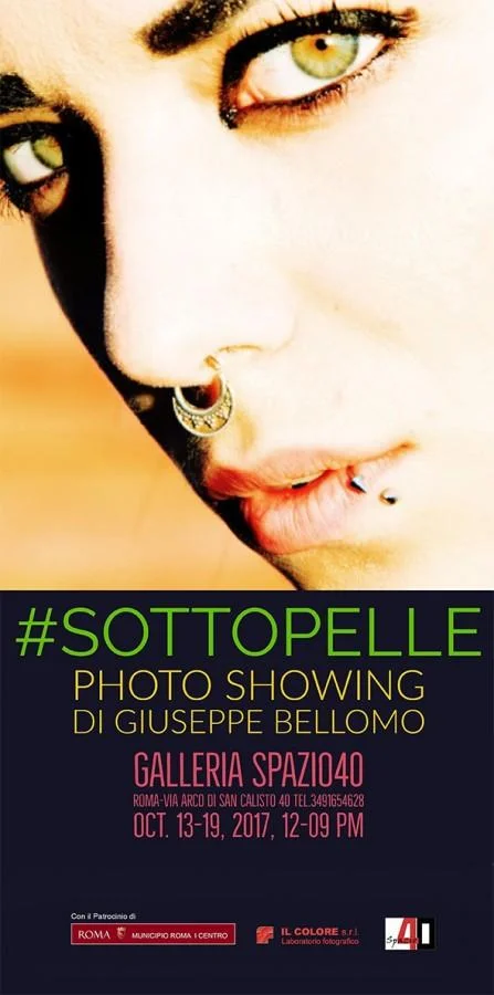 Giuseppe Bellomo, siciliano di nascita, fotografo ed operatore Sky, concentra la sua attenzione sui ritratti, attingendo al "dietro le quinte" del web e del fenomeno social network, e costruendo una interessante galleria di volti. #SOTTOPELLE, il titolo, è un invito a leggere le immagini esposte, attraverso la filigrana tessuta dall’autore, le sue esperienze e i percorsi maturati. Gli scatti raccolti nella mostra coprono uno sguardo fotografico lungo più di trent’anni. Nella fase che va dagli anni ottanta ai novanta, la sua visione coglie piccole quotidianità, la sfera immediatamente relazionale, e si contraddistingue per l’uso della pellicola, sia a colori che bianco e nero. Successivamente, alterna l’uso della pellicola al digitale, e concentra maggiormente la sua attenzione sul ritratto in studio, non trascurando reportage esterni, come quello fatto nel 2017 a Venezia, dove crea un originale set notturno, i cui scatti vengono esposti nella mostra in galleria. All'evento #SOTTOPELLE è stato concesso il Patrocinio del Municipio I - Roma Centro del Comune di Roma. Nella data di sabato 14 ottobre 2017 l'evento #SOTTOPELLE partecipa alla XIII Giornata del Contemporaneo, indetta da AMACI - Associazione Musei d'Arte Contemporanea Italiani. #SOTTOPELLE Personale di fotografia di Giuseppe Bellomo 13 - 19 ottobre 2017 Vernissage 13 ottobre - ore 19.00 Galleria Spazio40 Via dell'Arco di S. Calisto 40 - Roma (Trastevere) Orario tutti i giorni 12.00 – 21.00 (mercoledì chiuso) Info +393491654628 / Spazio40@tiscali.it