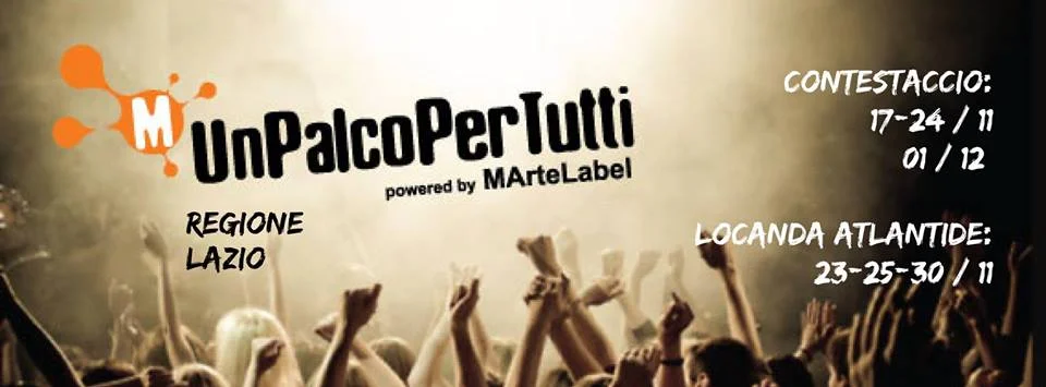 Un Palco Per Tutti a Roma Ultimo appuntamento con i contest musicali che danno accesso al MArteLive! 17 e 24 Novembre / 1 Dicembre Contestaccio – Via di Monte Testaccio 65 23, 25 e 30 Novembre Locanda Atlantide – Via dei Lucani 22 Ultimi giorni per partecipare alle serate di selezione di “Un Palco Per Tutti”, il contest “powered by MarteLabel” dedicato alle band emergenti, che dà la possibilità di accedere al MArteLive e di suonare in occasione della BiennaleMArteLive 2017, offrendo la grande opportunità di vincere un contratto di management del valore di 20.000 € con l’etichetta discografica MArteLabel. Il 17 e 24 novembre e il 1° dicembre c/o Contestaccio, il 23, 25 e 30 novembre c/o la Locanda Atlandine, Un Palco Per Tutti ritorna con lo scopo di selezionare le ultime 10 band emergenti under 39 che avranno l’opportunità di esibirsi in occasione della prima finale regionale del MArteLive, Festival storico di particolare interesse per la vita culturale della città per il 2016. MArteLive Lazio si svolgerà al Planet Live Club (via del Commercio 36) dal 6 all’8 dicembre con 3 eventi multi-artistici che vedranno esibirsi e sfidarsi in contemporanea più di 100 artisti a sera, affiancanti da guest del panorama nazi0nale, giocandosi il posto per la finalissima Biennale MArteLive 2017. MArteLive è il primo festival multi-artistico italiano che dal 2001 dà spazio e opportunità a migliaia di artisti distribuiti nelle 16 sezioni che compongono il festival. Il contest dà ai partecipanti la possibilità concreta di avviamento nel mondo della musica, offrendo un'esperienza artistica unica, esibizioni live in festival e location prestigiose, visibilità sulla stampa di settore specializzata, realizzazione di videoclip, merchandising, book fotografici e un contratto di management del valore di 20.000 € con l’etichetta discografica MArteLabel che negli ultimi anni ha scoperto, prodotto e portato al successo artisti come Nobraino e Management del Dolore Post-Operatorio, Dellera ma anche Underdog, Petramante, UNA (Marzia Stano), Giacomo Toni. Tra i vincitori del contest ricordiamo anche artisti come Nathalie e Kutso. A seguito della finale MArteLive Lazio verranno resi noti gli artisti che avranno conseguito il miglior punteggio, accedendo di diritto alla finalissima del contest Biennale MArteLive 2017, che si terrà a Roma in più location esclusive e che darà ai partecipanti l’opportunità unica di vincere un contratto di management del valore di 20.000 € e tanti altri premi.* *(I premi in palio per la prossima edizione saranno di valore superiore o pari a quelli assegnati nel 2014. Per consultare l’elenco aggiornato dei premi in palio visita il sito www.marteawards.it. Ricordiamo che l’elenco è in continua definizione e che i premi sono riservati non solo ai vincitori ma anche a coloro il cui lavoro verrà ritenuto degno di nota e attenzione). MODALITA’ DI PARTECIPAZIONE E TERMINI DI CONSEGNA Per partecipare alla prima finale regionale del Festival MArteLive, dedicata agli artisti domiciliati nel Lazio, iscriviti entro il 20 novembre 2016 sul sito www.martelive.it/concorso, compilando il form d’iscrizione online corrispondente alla sezione artistica desiderata, fra le 16 che animano il festival (musica, teatro, danza, cinema, videoclip, deejing, veejng, letteratura, arte circense, street art, pittura, fotografia, fumetto, grafica, moda&riciclo, artigianato artistico). Chi si iscrive dopo il 20 novembre potrà accedere alla seconda finale MArteLive Lazio, con una sola data prevista per aprile 2017. Per tutte le regioni, come da regolamento, le iscrizioni resteranno aperte fino al 31 gennaio 2017 quando inizierà ufficialmente la fase finale della Biennale MArteLive 2017, che tra febbraio e aprile vedrà lo svolgersi delle finali regionali o di macro-area, dislocate su tutto il territorio nazionale, nella formula multi-artistica che contraddistingue il festival. I vincitori delle singole finali regionali o di macro-area approderanno alla finale nazionale, Biennale MArteLive, che si svolgerà a Roma a settembre 2017, con data da definirsi. Tutti gli altri finalisti avranno l’opportunità di essere selezionati tramite il ripescaggio che sarà fatto dopo il mese di aprile, a conclusione di tutte le finali regionali italiane. Dai anche tu alla tua arte l’occasione unica di avere finalmente il riconoscimento che merita! ISCRIVITI A MARTELIVE! Se sei un artista tra i 18 e i 39 anni e non riesci ad emergere come vorresti, iscriviti al Concorso MArteLive e giocati il tuo posto alla BiennaleMArteLive 2017. Modalità di partecipazione: 1. Leggi attentamente il REGOLAMENTO (http://concorso.martelive.it/regolamento) 2. Scarica il bando della sezione o delle sezioni cui vuoi partecipare 3. Compila il form di iscrizione relativo alla sezione o alle sezioni scelte. 4. Entra in possesso della tessera associativa MArteCard che, oltre a garantire l’iscrizione a più sezioni del concorso, darà diritto ad una serie di sconti agevolazioni legate ad eventi artistici e culturali in tutta Italia. INFO: iscrizioni@martelive.it - info@martelive.it