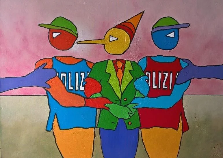 Saronno (VA) - L'artista pavese Davide Ferro è attivo da oltre trent'anni sulla scena nazionale. Le sue opere analizzano comportamenti umani e legami tra fatti e concetti, creando paradossi e cortocircuiti visivi, uomini-fantasmi che vivono con i piedi sollevati da terra e la testa staccata dal corpo. Dal 22 aprile al 21 maggio i suoi lavori recenti saranno esposti in una interessante personale dal titolo "Fantasmia", allestita nei locali del Centro d'Arte Malagnini di Via Verdi 20 (inaugurazione sabato 22 aprile ore 18.00; visite da martedì a sabato, ore 16.00-19.00, domenica su appuntamento). La mostra è a cura di Michele Malagnini; il testo critico di Martina Corgnati. Proprio la nota critica d'arte sottolinea nel saggio i punti di interesse della presente mostra che, segna un'ulteriore semplificarsi del linguaggio dell'artista rispetto alle stagioni precedenti. E che propone quadri simili a un racconto ininterrotto, una specie di diario, dove sono appuntati fatti, esperienze, accadimenti quotidiani. «Davide Ferro – scrive la Corgnati - ha messo a punto uno stile molto ben definito, personale e riconoscibile, caratteristica che lo distingue immediatamente da gran parte degli autori contemporanei, spesso pronti ad adattare mezzi e forme alle particolarità delle diverse occasioni e dei diversi temi che affrontano. Da questo punto di vista, l'artista condivide con molti predecessori la ricerca e, perché no?, l'orgoglio di un linguaggio "forte" benché, anzi proprio perché, molto sintetico, semplice, come dicevo, comprensibile e leggibile alla prima occhiata e a chiunque. Un linguaggio che attinge non poco dall'esperienza del graffitismo ma anche dal mondo dei fumetti, espressioni, entrambe, della cultura popolare, a loro agio per la strada, nell'ambiente pubblico, da praticarsi in tempi morti o indefiniti, tempi con la "t" minuscola e magari in diretta, cioè come performance, attività che, non a caso, l'artista coltiva volentieri». L'artista ritrae personaggi o animali mascherati, privi di testa, vuoti come fantasmi o personaggi tratti da citazioni di opere d'arte, caricature di se stessi. Le sue immagini sono un «rispecchiamento paradossale e distorto di un mondo – sono parole della Corgnati- in apparenza estraneo e fumettistico, ma che, in realtà, è proprio il nostro, le nostre città, i nostri rituali, la nostra falsa coscienza, le nostre convinzioni stereotipate e rigide, i nostri fantasmi e la nostra, parola calzante, superficialità». Info e contatti Centro d'arte Malagnini Via Giuseppe Verdi 20/22 – Saronno (VA) www.centrodartemalagnini.com info@centrodartemalagnini.com Tel. 338 7654600 – 320 3733769