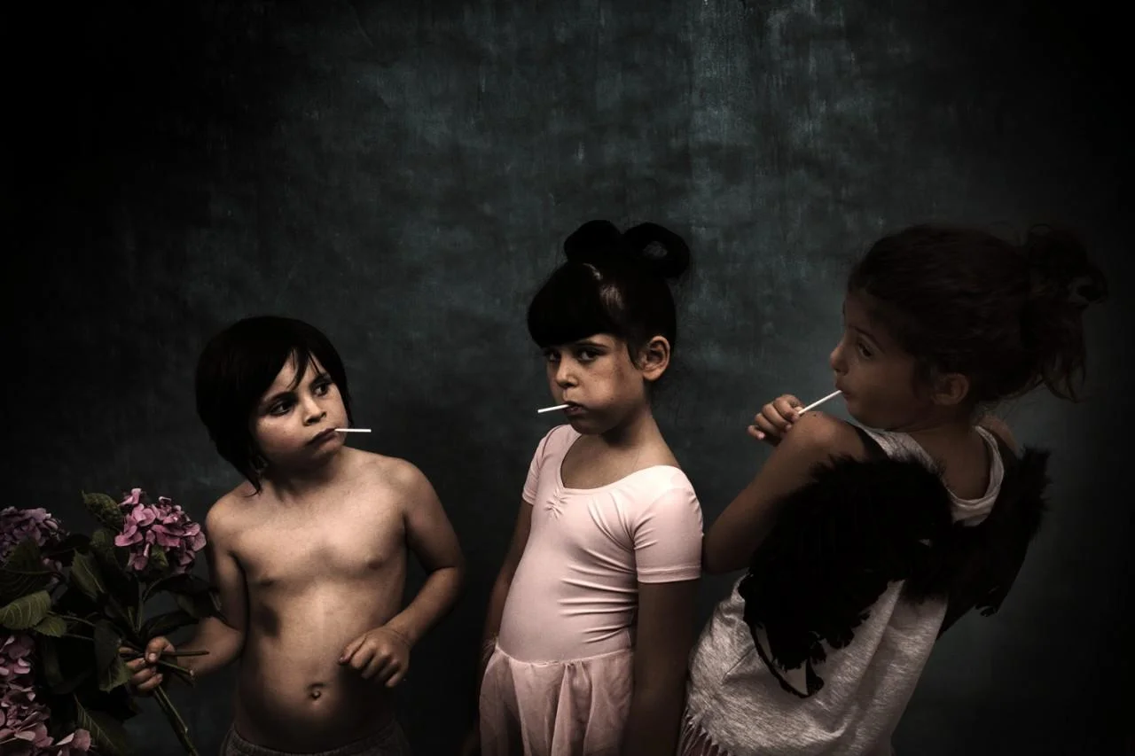 Nella prima serie di immagini – da cui è partito l’intero progetto – singoli o in gruppo, abbigliati con abiti ottocenteschi arricchiti da corone e accessori kitsch, in atteggiamenti tra il provocatorio/provocante e il ribelle, si muovono sicuri di sé cinque bambini. Nella seconda e terza serie, maggiormente permeabili tra loro, adulti non ancora cresciuti, dandy tossici tra chitarre e dischi rock, con trucchi da défilé dentro abitazioni da sogno (o da incubo) mettono in scena un’orgia di solipsismo e trasgressione; sfida liberatoria dell’io al perbenismo e alla cultura dominanti. Protagonista assoluto il corpo: «Oggi che il discorso delle classi è meno evidente e pervasivo, emergono altre radici di tensione. Da un lato c’è una generazione di giovanissimi che ha una sessualità completamente nuova non ascrivibile a nessuna categoria; dall’altra c’è una deriva repressiva e di non accettazione del minimo deviante… pensa alle censure sui social network. Siamo nell’era del massimo sfogo autoerotico alla youporn e dell’esasperazione del politically correct». Prosegue l’autore: «Quello che mi è sempre interessato del punk è l’aspetto disturbante, che è ciò che mi porto nella creazione artistica, nella composizione. Nel caso specifico ho lavorato con dei bambini, una visione non tradizionale dell’infanzia, con una sessualità espressa in maniera del tutto spontanea; e con la sensualità o la nudità degli adulti, comunicata in modo così naturale che solo dieci anni fa sarebbe stato impossibile. Bisogna toccare ciò che non si riesce a capire o accettare: ci sono degli argomenti che ancora scandalizzano e come i ragazzini si mettevano a suonare il punk per criticare qualcosa, io sto suonando il mio punk perché voglio raccontare questa storia».