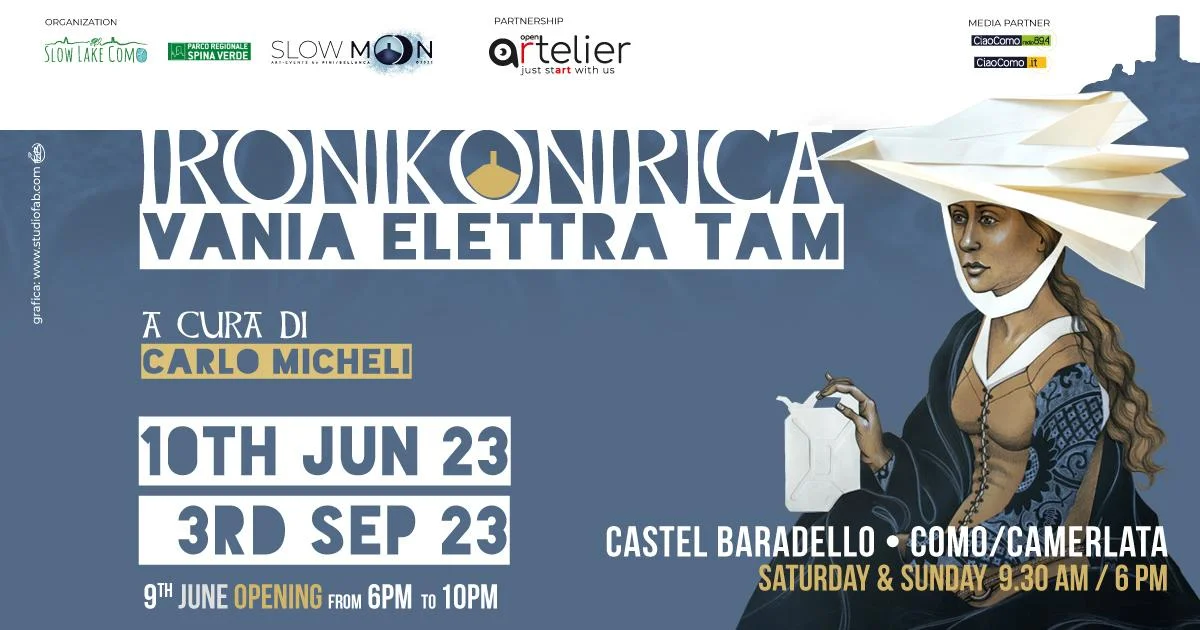 IRONIKONIRICA La conTAMinAzione artistica di Vania Elettra Tam - Castel Baradello (CO) dal 10 giugno al 03 settembre 2023 Vernissage venerdì 09 giugno dalle ore 18:00 alle ore 22:00 con visita notturna alla terrazza della torre del Castel Baradello. – vernissage a ingresso libero. Baradello Art Lab, Parco Spina Verde, Slow Lake Como e Slow Moon hanno il piacere di annunciare la prossima esposizione di arte contemporanea, terzo appuntamento della stagione 2023. Dopo i successi delle prime due mostre «di aria, di acqua, di terre» di Vittoria Monico e Giuseppina Martines e «Black Wave» di Carlo Pozzoni e Francesca Gamba, è ora la volta di «IRONIKONIRICA» di Vania Elettra Tam che inaugura il mese dedicato alla bellezza. Nata e cresciuta a Como, dove ha tenuto tra l'altro la sua prima mostra, Vania torna ad esporvi a distanza di quasi vent'anni, vissuti prevalentemente a Milano. La mostra presenta una miscellanea di opere scelte che si rifanno a temi medioevali e rinascimentali, in linea con gli spazi e lo stile architettonico del castello. Così il critico Carlo Micheli: ConTAMinAzione è un termine che si adatta all'intera produzione di Vania Elettra Tam, ma in particolare alle opere qui esposte, vere e proprie scorribande nel mondo dell’enigmistica, della psicanalisi, del fumetto, della satira, dell'arte antica, condotte sempre con eleganza e misurata ironia. Piace pensare che la parola si spezzi a formare una frase: «con Tam in azione», un’esortazione a mettere in moto le cellule grigie, per godere non solo visivamente del-le preziosità di Vania, delle sue qualità artistiche, ma anche del suo sense of humor, della sua corrosiva leggerezza, della sua soave crudeltà… La contaminazione si estende alle opere leonardesche nelle quali, trasformatasi in una sorta di “reporter atemporale” in vena di scoop, l'artista ha immaginato di trovarsi nell’atelier del maestro, mentre i personaggi dei suoi quadri si apprestano a posare per lui, circondati da un esercito di sarti, parrucchiere, manicure che ne curano maniacalmente il look. In Kanon-regole ferree l'artista rielabora ritratti di epoca rinascimentale sovrapponendo ai loro volti nuovi marchingegni di ferro atti a correggere eventuali loro difetti: labbra troppo sottili, nasi un po’ adunchi, occhi troppo piccoli, fronti o menti troppo sporgenti. Il canone di bellezza, di classica memoria, ancora una volta intende porre ordine in una natura che sembra rassegnata a subire qualsiasi artificio. Il tutto filtrato sempre attraverso il variegato universo femminile che nell’intera opera di Vania Elettra Tam è protagonista assoluto di un immaginario al tempo stesso reale e irreale, ironico e onirico. Da qui il titolo di questa mostra, IRONIKONIRICA, un neologismo inteso a sottolineare l'avvento di una nuova complessa iconografia, che trae spunto tanto dal sogno quanto dall'ironia, in un percorso concettualmente tortuoso che giunge, infine, ad un'insospettabile sintesi, ad una immediatezza da slogan pubblicitario, una frecciata che sa sempre cogliere il centro del bersaglio. Negli Origami Clitoridei (e il titolo è tutto un programma) le figure femminili hanno il capo avvolto da un soggolo bianco, copricapo utilizzato dalle nobildonne dell’alto medioevo, che nelle singole opere, assume forme inconsuete, che riportano alla mente atmosfere felliniane, taglienti e surreali. Vania Elettra Tam si cala nel contemporaneo armata di seduzione e sagacia e nelle sue opere nulla è scontato e prevedibile, perché essere artisti significa saper rendere visibile l’invisibile.