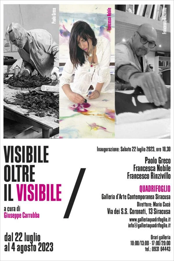 Visibile oltre il visibile: mostra di Greco, Nobile e Rinzivillo alla galleria Quadrifoglio Siracusa – Visibile oltre il visibile, un progetto artistico che ha il sapore della ricerca e dell’incontro. Tre artisti, tre diverse anime, un comune sentire: Paolo Greco, Francesca Nobile e Francesco Rinzivillo danno appuntamento sabato 22 luglio alle ore 18.30 alla Galleria Quadrifoglio in via dei Santi Coronati 13 a Siracusa, per l’inaugurazione di una mostra dai toni intensi curata da Giuseppe Carrubba. Si tratta di un’esposizione che inserisce le specifiche narrazioni di ogni singolo artista, frutto di tematiche personali, all’interno di uno spazio-tempo in cui dialogano pittura, scultura e installazione. Lo spunto dalle naturali diversità delle tre esperienze artistiche ha dato modo a Giuseppe Carrubba, critico d’arte e curatore indipendente, di seguire la traccia del segno che attraversa le varie forme oltre la superficie. In questa indagine nasce quel visibile che si apre a nuovi livelli percettivi, secondo dinamiche contemporanee dettate dai binomi assenza-presenza, occultamento-rivelazione. Carrubba di fatto specifica: «Paolo Greco, Francesca Nobile e Francesco Rinzivillo, in Visibile oltre il visibile, mettono in campo aspetti relazionali e simbolici differenti, generano livelli di percezione in continua evoluzione, per indagare quell’aspetto liminare, qualcosa che emerge dalla condizione intermedia tra la luce ed il buio, l’immagine e l’astrazione, l’impronta o la sua ombra, l’indizio e la sparizione, il vuoto e l’infinito». Paolo Greco, nato a Catania, ha sviluppato una personale ricerca attraverso la passione per la cultura e il cinema on the road, le neoavanguardie, il Nouveau Realisme e la Pop Art. Negli anni della maturità giunge ad affermare il valore di un’arte del riciclo di materiale desunto dalla strada quale lo pneumatico che, triturato e assemblato, diventa metafora di un’esistenza riabilitata. «L’uso della gomma riciclata – scrive Carrubba – ha un ruolo fondamentale, all’interno di un progetto artistico che affronta tematiche formali ed estetiche, in una produzione che riduce i limiti tra natura ed artificio: un simbolo dell’attività umana acquista nuova vita e diventa emblema di criticità e di sostenibilità». Greco ha partecipato a mostre collettive e personali in spazi pubblici e privati tra nord e sud Italia. Sue opere sono presenti nelle collezioni della Galleria Regionale di Palazzo Bellomo di Siracusa, del Museo del pane di Salemi, del Comune di Pozzallo, del Comune di Henstedt-Ulzburg e della Fondazione Benetton di Treviso. Francesca Nobile è pittrice multidisciplinare, performer e insegnante di yoga. Di origine ragusana, si è laureata all’Accademia di Belle Arti di Firenze, ha conseguito all’istituto Polimoda fiorentino un Master in “Fashion Design and Concept Brand Image”, lavorando successivamente per Enrico Coveri, Ermanno Daelli e Marella Ferrera. La sua è una poetica libera e performativa in cui si alternano aspetti duali quali malinconia e vitalità, felicità e inquietudine, metafisica e quotidiano. Di lei Carrubba dice: «L’artista lavora sull’archetipo, sull’automatismo psichico, sulla meditazione, sui simboli dicotomici di un’esperienza onirica tra gioie e paure, con il corpo che è lo strumento che le permette di trascendere la materia. Un corpo che abita lo spazio dell’opera, lo attraversa lasciando tracce e colore, crea impronte e sovrapposizioni, tessiture e trame vitali». La carriera artistica della Nobile la porta a esporre in mostre personali e collettive in Italia e all’estero e a dedicarsi alla filosofia orientale e allo yoga nell’Atelier Love Project di Siracusa. Francesco Rinzivillo, nato a Comiso, negli anni Duemila sviluppa un linguaggio intimista e antiretorico grazie all’uso di un’arte transdisciplinare che mette in campo pittura, fotografia, videoarte e installazioni. La sua è un’etica dell’arte fondata sulla tradizione iconica proiettata verso la contemporaneità che scava temi umani di forte valenza emotiva quali l’identità, la memoria, la sparizione. Sulla sua attività artistica Carrubba sottolinea: «Un approccio alla rappresentazione teso a cogliere l’essenza delle cose fuori dal tempo e dalla storia, con un atteggiamento obiettivo, attraverso il quale l’artista definisce la forma della sua pittura, improntandola su una linea etica ed estetica che determina un processo di precisione secondo un’ottica maniacale, con una perfezione retinica e materica che è il risultato di una paziente applicazione della tecnica delle velature». Tra mostre e progetti di stampo nazionale, Rinzivillo nel 2022 entra a far parte dell’Archivio S.A.C.S. del Museo Regionale d’Arte Moderna e Contemporanea di Palermo. In "Visibile oltre il visibile" i tre artisti viaggiano l’uno accanto all’altro tra sculture, installazioni, pittura e performance, restituendo voce alle proprie essenze interiori alla ricerca di “una forma che subisce alterazioni, deformazioni, amplificazioni in relazione al rapporto con la realtà fluida e mutevole della società contemporanea”. La mostra è sponsorizzata da Dr Servizi Aziendali s.r.l., Sirgen s.r.l. e “CCÀ e DDÀ Graniteria”. Sarà possibile visitarla fino a venerdì 4 agosto con i seguenti orari: dalle 10 alle 13 e dalle 17 alle 20. Info www.galleriaquadrifoglio.it info@galleriaquadrifoglio.it