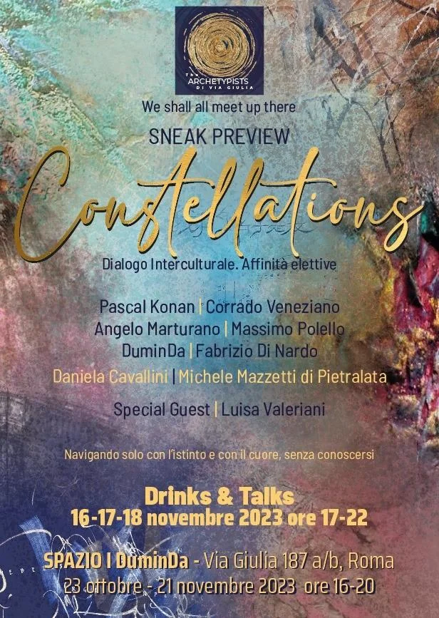 "Ho desiderato esplorare altre dimensioni e scoprire artisti che, a prescindere dalle loro caratteristiche terrene, potessero dialogare tra di loro, in una nuova logica e configurazione tempo-spaziale, una sorta di costellazione immaginaria, al di fuori da schemi, criteri razionali, mappe, limiti ed 'ismi". Sara Corti Sei artisti visivi, fieri ed autentici nel loro lavoro espressivo, tutti protesi a seguire un cammino individuale, e tutti pero' certi che un traguardo comune, in quel punto che incrocia stelle e cuori, in qualche modo sarà raggiunto. Special Guest: Luisa Valeriani