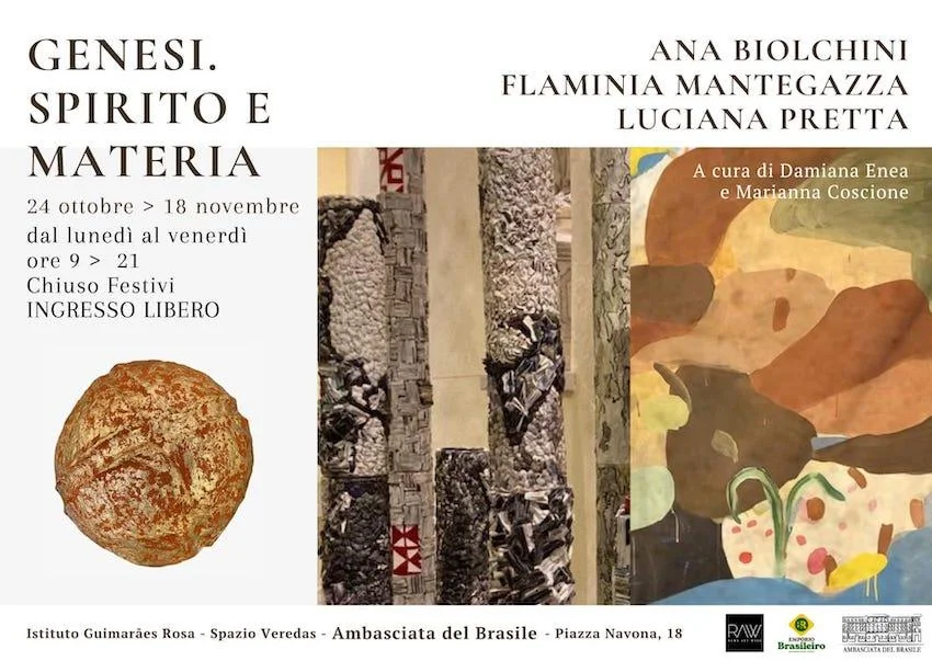 Genesi. Spirito e Materia Ana Biolchini, Flaminia Mantegazza, Luciana Pretta Fiore A cura di Marianna Coscione e Damiana Enea Inaugurazione 24 ottobre 2022 ore 18.00 Istituto Guimarães Rosa - Spazio Veredas Ambasciata del Brasile Piazza Navona 18 - Roma Fino al 18 novembre 2022 Il giorno 24 ottobre 2022 alle ore 18.00, inaugura presso Spazio Veredas, lo spazio espositivo dell'Ambasciata del Brasile all'interno dell'Istituto Guimarães Rosa in Piazza Navona, il progetto Genesi. Spirito e Materia di Ana Biolchini, Flaminia Mantegazza, Luciana Pretta Fiore a cura di Marianna Coscione e Damiana Enea. Nella collettiva Genesi. Spirito e Materia si assiste alla realizzazione di un domani, uno spazio siderale in grado di contenere la passionalità e la potenza di un’emotività illibata, incorrotta: i materiali utilizzati -terracotta, carta e tela- trascendono dalla loro essenzialità per divenire elementi demiurghi in un rapporto dualistico natura/terra, inizio/fine. “Anno zero. Così potremmo definire il contesto storico che stiamo vivendo. La pandemia, come un fiume in piena, ha creato un solco profondo in quel mondo globalizzato ed efficiente a cui ci siamo aggrappati per anni, credendolo infinito e imperturbabile. Una scossa in grado di creare crepe insanabili nelle nostre certezze, nelle nostre relazioni, nelle nostre convinzioni. E così le nostre gambe hanno iniziato a tremare, senza che intorno a noi nulla si muovesse, e come un effetto a catena karmico e quasi apocalittico si sono susseguite guerre, carestie, alluvioni. Siamo stati obbligati ad entrare in contatto con noi stessi, con le nostre personalità, costretti ad abbracciare le nostre paure ormai senzienti e concrete. Nella crisi della collettività, è venuto a determinarsi quel concetto entropico secondo il quale nulla si crea e nulla si distrugge che si definisce nell’auto-conservazione e nel bisogno di dare vita ad un nuovo mondo. Il mondo dopo la fine del mondo. Ed è da questo concetto che prendono vita le opere di Ana Biolchini, Flaminia Mantegazza e Luciana Pretta Fiore. Una diversità di molteplici e mutevoli identità in grado di inscriversi nell’assolutismo di una Genesi. Un’origine che prende vita dalla forma sensibile umana, che si pone la questione dei limiti del concetto di esperienza distruggendo le nozioni di etica e morale: un creazionismo che si eleva dal caos e si fa materia. Ed è a questo punto che Ana Biolchini ci invita a partecipare a questa rinascita attraverso un atto intellettuale consapevole, riflettendo la propria individualità nello specchio che come un richiamo viscerale attende il vergi- ne seme sospeso: duplicazione di una pluralità di anime che si restituiscono nello sguardo di un nuovo cosmo. Acqua e terra, le protagoniste nel rispetto della visione demiurga del Creato. Una natura in grado di fondersi in un nuovo ordine: la Terracotta diviene per Ana spirito e materia. Alla formazione di questa giovane umanità l’artista affida delle tavole di carta, in cui torna sovrano il richiamo al numero 6 – espresso nella linearità delle spirali – in un inizio e una fine in continuo divenire, come offerta di bellezza, compassione e gloria. Proprio all’alba di questa nuova Era si ergono possenti le colonne di Flaminia Mantegazza, cardini tra i due mondi che ci ricordano la non contemporaneità del presente. Edificate dalla memoria e dai vissuti dell’artista che ci ammonisce ed esorta a ridefinire la nostra visione di superfluo: pagine di vecchi libri, fogli di giornale, scontrini riacquistano autorità in una trascendenza corporea. Divengono fondamenta e sommità, in un colloquiare dove le parole si modellano fino a farsi concretezza – mattoni invalicabili – infinite nel tempo e nello spazio: abbandonano i confini conosciuti e cartografici, abbattendo le barriere della globalità, per divenire sinonimo di universalità. Così, la duttilità della carta si fa eterea e marmorea, un’archeologia dello gnomon nella sua accezione astronomica con il compito di indicare l’origine di un susseguirsi di stagioni rinnovate in un’ottica del tempo che si fa altro: evoluzione e rinascita, un riverbero che si ricostituisce nella singolarità di questa generazione agli esordi, circoscritta nell’iconografia del Quadrato, inteso come Creato in un rapporto dualistico cielo/terra, spirito/materia. Divenendo così, uno spazio siderale – ripristinato fin dai suo esordi – in grado di contenere la passionalità e la potenza di un’emotività illibata, incorrotta. Luciana Pretta Fiore si inserisce in tale necessità custodendo il dovere di educare questa umanità: rompe il silenzio sulle angosce finora celate, squarcia i terrori dell’infanzia, lacera la banalità dell’odio tutelandone la misericordia e la compassione soppresse che, ricompone tessendone i fili, in un climax discendente che ci riporta alla terra. Una tela intrecciata che scardina i preconcetti, invitandoci a non delimitare il nostro spirito indicandoci un orizzonte ancora ignoto. Colori tenui, in un susseguirsi di linee che si inseguono e si sovrappongono, in un gioco di ambivalenze che si risolvono in un equilibrio emotivo: una memoria primordiale che con grande forza di volontà si ricompone in un atteggiamento di esuberante quiete. Tre doni, tre donne, tre materiali: una triade genitrice che ci persuade a partecipare a questo nuovo domani, che troppo a lungo abbiamo solo osservato, come creature alla soglia.” Damiana Enea La mostra, all’interno della settima edizione di Rome Art Week, è visitabile dal 24 ottobre al 18 novembre 2022, dal lunedì al venerdì dalle 9.00 alle 21.00. INFO Rome Art Week 2022 Genesi. Spirito e Materia Ana Biolchini, Flaminia Mantegazza, Luciana Pretta Fiore A cura di Marianna Coscione e Damiana Enea Inaugurazione 24 ottobre 2022 ore 18.00 Istituto Guimarães Rosa - Spazio Veredas Ambasciata del Brasile Piazza Navona 18 - Roma Fino al 18 novembre 2022 Orari: dal lunedì dal venerdì dalle 