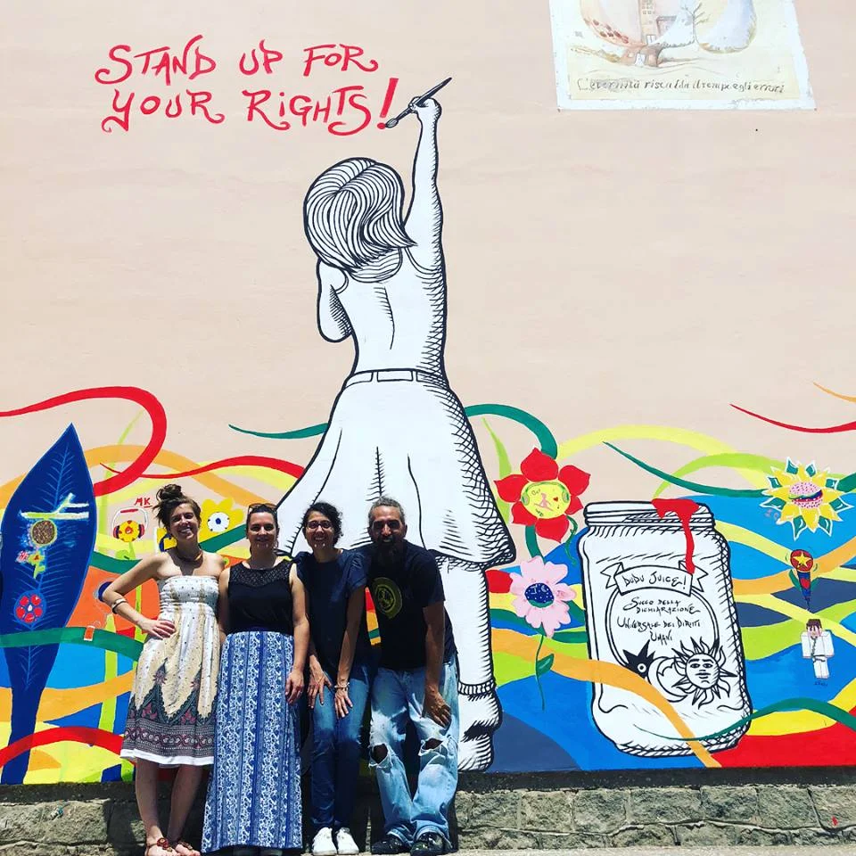 Anche quest’anno la provincia di Rovigo si arricchisce di colorate ed efficaci opere di street art. Merito del festival itinerante DeltArte e del progetto Arte per i diritti umani dell’associazione Voci per la Libertà inseriti all’interno di Arte per la Libertà, il festival della creatività per i diritti umani. Grazie a DeltArte, a cura di Melania Ruggini, da 6 anni il Delta del Po prima, Rovigo poi e ora anche le province di Padova e Ferrara sono state invase dalle coloratissime opere di arte pubblica di artisti di fama internazionale come Tellas, Dem, Lucamaleonte, Hitnes, Melinda Sefcic, Peeta, Centocanesio e tanti, tanti altri. Grazie a percorso itinerante che fa leva sulle bellezze ancora selvagge del Delta del Po e sulle periferie urbane sta dunque prendendo forma un vero e proprio museo diffuso dove poter scoprire opere sempre nuove che anno dopo anno aumentano. La street art si conferma dunque la soluzione vincente proposta dalla curatrice Melania Ruggini per trasmettere importanti messaggi sui diritti umani alle scuole e alle comunità locali e per la rigenerazione urbana delle città e soprattutto dei quartieri periferici. Tra gli street artist di questa edizione si segnalano Riccardo Buonafede, Gianluigi Zeni, Centocanesio, Zentequerente, Marco Mei. Particolarissime anche le due Cacce alla street art realizzate nei comuni di Loreo e Comacchio, rispettivamente l’8 e il 15 giugno, ad opera di Gian Luigi Zeni e Marco Mei. I due artisti under 35 hanno coinvolto le scuole della città per creare un percorso itinerante in cui ricercare i loro stencil; un progetto che racchiude il potere del gioco, della socializzazione, dell’educazione, della scoperta del territorio. Un modo inedito per accogliere i turisti nel proprio territorio, enfatizzando alcuni scorci e punti di interesse delle città proprio grazie alla street art. A Loreo Gianluigi Zeni ha realizzato ben 8 opere in un percorso itinerante per le calli, che hanno toccato la biblioteca, le scuole medie e la palestra, le scuole elementari, il teatro, il municipio, la Riviera Nuova, le fioriere. A Comacchio Marco Mei ha creato 5 grandi opere con la tecnica dello stencil, collocate dapprima in alcuni luoghi significati del centro storico di Comacchio per la caccia alla street art da parte dei bambini delle scuole dell’infanzia Mons. Virgili e Nostra Signora di Lourdes, per poi essere esposte nella sala lettura ‘Nati per leggere’ di Palazzo Bellini, assieme alle due tavole realizzate dai bambini insieme all’artista durante i laboratori, per tutto il 2018. Per quanto riguarda le altre opere di street art, le scuole medie di Costa di Rovigo ospitano, sulla parete esterna dell’istituto comprensivo, “Stand up for your rights” di Zentequerente, nome d’arte di Luca Vallese. Nel murales di Costa, una ragazzina è colta mentre sta scrivendo sul muro della sua città la scritta ossia “difendi i tuoi diritti”. Per dipingere questa scritta la ragazzina usa la marmellata che si trova nel barattolo ai suoi piedi, di cui lei è ghiotta. La marmellata, usata come inchiostro per realizzare il suo slogan, è una metafora; essa rappresenta il mix degli articoli presenti nella dichiarazione universale dei diritti umani, ossia è formata dai diritti fondamentali dell’uomo, che si dovrebbero avere ben presente fin dall’infanzia e portarli con noi in ogni fase successiva della vita e nella nostra quotidianità. La street art ha ravvivato anche il campo sportivo di Villadose con una nuova opera firmata da Centocanesio. Assieme ai ragazzi di seconda media dell’istituto comprensivo, nelle mattine del 14 e il 19 maggio, Centocanesio ha dato vita a un’opera di quasi 20 metri dove campeggia la scritta “We got game”. Il graffito intende infatti valorizzare il forte potere positivo dello sport a partire dalla gioventù grazie al lettering colorato. Nel comune di Lendinara il giovane artista emiliano Riccardo Buonafede ha realizzato un’opera accattivante di street art su una cabina elettrica che si affaccia sul fiume Adigetto con le classi terze medie dell’Istituto Comprensivo statale che ha avuto per tema la salvaguardia dell’ambiente. Una seconda cabina elettrica è stata invece dipinta a Villaggio Perla di Taglio di Po sempre da Buonafede in collaborazione con i ragazzi di III A e III C della scuola media dell’Istituto comprensivo Maestri. Qui vengono raffigurate due grandi donne che si sono contraddistinte per il loro impegno verso la difesa dei diritti umani e della pace: Malala Yousafzai e Madre Teresa di Calcutta, premi Nobel per la pace. Infine Arte per la Libertà è arrivata alla scuola media Carlo Goldoni di Ceregnano che ha visto la partecipazione di una cinquantina di alunni, guidati dall’artista Gianluigi Zeni. Il gruppo ha lavorato utilizzando la tecnica dello stencil, tagliando dapprima le sagome, scegliendone i colori e dipingendo le figure. Le silhouette di alcuni ragazzi che nascono da un codice a barre – simbolo del pericolo di omologazione della società moderna – e diventano sempre più differenti le une dalle altre e colorate, così come diverse e speciali sono le identità di ciascuno di noi. “Siamo molto soddisfatti dei risultati di questi laboratori con gli artisti - spiega Melania Ruggini, curatrice del progetto - perché gli studenti ci hanno gratificati e ci hanno regalato tante emozioni e nuove idee per continuare questo importante cammino in nome dell’arte, della creatività e della sensibilizzazione sociale”. Con il contributo di: con il sostegno di MiBACT e di SIAE, nell’ambito dell’iniziativa “Sillumina – Copia privata per i giovani, per la cultura”; Progetto sostenuto dalla Fondazione Cassa di Risparmio di Padova e Rovigo nell’ambito del bando “CulturalMente Impresa”; Partner Istituzionali: CGIL Rovigo, CISL Padova e Rovigo: Sponsor: ITALIPIZZA. Con la collaborazione di: Provincia di Rovigo, ReteEventi, i Comuni di: Comacchio, Lendinara,Loreo, Pole