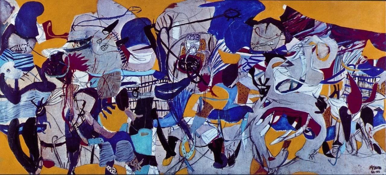 Con la mostra Oversize. Grandi capolavori dalle collezioni del CAMeC, il Centro Arte Moderna e Contemporanea della Spezia torna a dedicare un inedito progetto espositivo alle sue collezioni permanenti, con inaugurazione il 12 ottobre 2019, alle ore 18.00, in occasione della XV Giornata del Contemporaneo promossa da AMACI. Si tratta di una rinnovata selezione, che si offre quale contrappunto alla mostra realizzata nel 2017/18 nello stesso ambiente, il secondo piano del museo: se in Small Size. Piccoli capolavori dalle collezioni del CAMeC, circa 200 piccole opere ne affollavano le pareti, in questo percorso espositivo soltanto una quarantina di lavori di grande formato, alcuni dei quali mai esposti, dialogano fra loro e si presentano allo spettatore nel loro potente impatto visivo. «I nostri musei civici nascondono dei veri e propri forzieri ricolmi di capolavori – dichiara il Sindaco Pierluigi Peracchini – alcuni dei quali, per la vastità del patrimonio, mai esposti. È nostra intenzione riscoprire e ammirare le collezioni civiche, che non solo documentano gran parte della storia dell’arte contemporanea ma soprattutto la grande propulsione che La Spezia ha dato e continua a dare al contemporaneo. La mostra Oversize, Grandi capolavori dalle collezioni del CAMeC si inserisce proprio in questo progetto: dare lustro alle grandi opere acquisite grazie al Premio del Golfo e alle donazioni Cozzani/Battolini, inorgogliendo la Città che fa mostra delle sue opere più grandi in termini di dimensioni e di bellezza». Imposto e contraddistinto dalla dimensione, il florilegio si articola in un tracciato che associa alla cronologia l’accostamento linguistico, la consonanza estetica, l’accordo tematico. La silloge è attinta da tutti i diversi fondi conservati al CAMeC. Ampiamente rappresentato è il nucleo ‘storico’, ossia la pregevolissima raccolta di dipinti acquisiti nell’ambito del Premio Nazionale di Pittura intitolato al Golfo della Spezia, rassegna-concorso che dal 1949 al 1965 ha animato le estati spezzine chiamando a sé artisti di grande rilevanza anche internazionale, in quegli anni giovani promesse, oggi ampiamente storicizzati e musealizzati. «L’incipit della mostra – spiega la curatrice Eleonora Acerbi – è affidato a Ragazzi che cercano granchi di Renato Guttuso, tela dedicata alla rappresentazione del lavoro marinaro, cui andò il massimo riconoscimento all’esordio della manifestazione, nel 1949 appunto, opera inscrivibile nella interessante fase pre-realista dell’autore siciliano. Fra gli altri grandi dipinti – di noti artisti – presenti al CAMeC grazie al Premio del Golfo e qui riuniti, spiccano inoltre un esemplare appartenente alla celebre serie delle Finestre di Giuseppe Santomaso, del 1952, riuscito saggio del periodo ‘astratto-concreto’; una preziosa digressione in pittura dell’architetto Ettore Sottsass Jr., Porto di mare del 1952, risalente al momento di adesione agli assunti del MAC, Movimento Arte Concreta, molto frequentato dagli architetti; Vie del Mondo di Emilio Vedova, importantissimo lavoro del 1953, singolare saggio della sua incipiente adesione alla temperie informale; Le dolci colline di Brisighella di Mattia Moreni, maestoso paesaggio informale che ottenne il massimo riconoscimento nel 1954; Senza occhi di Emilio Scanavino, del 1963, riuscitissimo esempio del suo pronunciamento astratto carico di tensione emotiva». La presenza di diverse voci internazionali si deve prevalentemente al nucleo ‘Giorgio e Ilda Cozzani’. Collezionista onnivoro ed enciclopedico, raccoglitore inesausto e girovago, particolarmente attratto dalla produzione contemporanea straniera, Giorgio Cozzani visitava regolarmente la Biennale di Venezia, Documenta a Kassel, ma anche le più importanti gallerie di Londra e Parigi. Alla sua curiosità e al suo fiuto si devono alcune rarità, e di grande formato. Fra le altre: Infernalezza di Helmut Sturm, 1962-63, che nella sua casa-galleria occupava la stravagante collocazione nel soffitto della sala da pranzo (l’opera si trasferirà in Germania nell’estate 2020 in occasione di una mostra retrospettiva dedicata all’autore); di Joseph Kosuth, nume tutelare del cosiddetto Concettuale-tautologico, Ob-ject (Art as Idea as Idea), del 1967, uno dei suoi celebri ingrandimenti del testo da una voce di glossario; di Kenneth Noland, fra i più autorevoli interpreti della Colour Field Painting, Spring Gauze, tela dal formato singolare, spiccatamente allungato, appartenente alla serie dei Plaid, del decennio 1970; di Thomas Schütte, celeberrimo scultore tedesco, del 1987, Kartoffeln, un giovanile lavoro bidimensionale dedicato alla patata, appartenente a una serie il cui protagonista è, appunto, il tubero mangereccio, rappresentato in dimensioni spropositate, a stimolare gli interrogativi dello spettatore; altresì imponenti sono gli Allumettes di Raymond Hains, 1967, monumentali fiammiferi realizzati dall’artista francese dalla metà degli anni Sessanta a seguire. In mostra, ancora, alcuni premi assegnati (e acquisiti, grazie alla formula del premio-acquisto) nell’ambito del rinnovato Premio del Golfo, Biennale europea arti visive (2000-2006). Fra gli altri un Senza titolo del 2000 di Cristiano Pintaldi, allora agli esordi della sua distintiva simulazione del pixel, che in questo caso ripropone un personaggio appartenente ai primordi delle produzioni televisive di fantascienza, il platinato Comandante Ed Straker della serie Ufo. Una menzione particolare merita Jerusalem di Jason Martin, come Pintaldi classe 1970, oggi acclamatissimo esponente della produzione britannica: il dipinto, di proprietà della Fondazione Carispezia che gentilmente ne ha concesso il prestito, appartiene altresì alla collezione del Premio del Golfo edizione XXI secolo; grandissimo lavoro realizzato ad olio su alluminio, rappresenta un precoce saggio della sua inconfondibile pittura, che per la sovrabbondanza materica entra nella terz