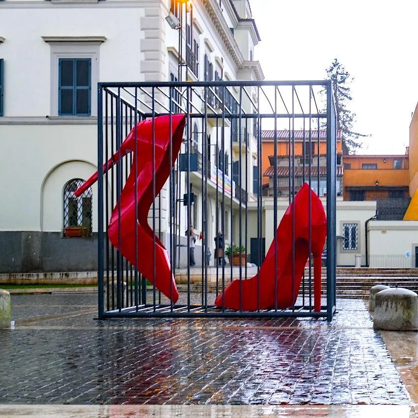 La Violenza è una Gabbia Installazione monumentale di Anna Izzo Svelamento e presentazione 7 marzo 2025 ore 10.30 Piazzetta Eugenio Conti - Grottaferrata (RM) Fino al 31 gennaio 2026 Venerdì 7 marzo 2025 alle ore 10,30 la Città di Grottaferrata presenta l’installazione monumentale La Violenza è una Gabbia di Anna Izzo, a cura di Roberta Melasecca. Lo svelamento e l’inaugurazione, nella Piazzetta Eugenio Conti antistante la sede comunale, avverrà in una cerimonia pubblica alla presenza del Sindaco di Grottaferrata Mirko Di Bernardo e dell’Assessora alle Pari Opportunità Paola Franzoso, delle autorità civili e militari, dell’artista e della curatrice, nonché degli studenti delle scuole superiori della città. L’opera dà il via ad una serie di iniziative, promosse dalla Città di Grottaferrata, sotto l’alto patrocinio del Parlamento europeo, del Senato della Repubblica, della Camera dei deputati, della Regione Lazio, della Città metropolitana di Roma Capitale, e in collaborazione con l’Associazione Ponte Donna, che confluiscono nella rassegna Basta…! Un anno di pensieri, riflessioni e azioni per l’eliminazione della violenza contro le donne ed il futuro dei loro figli: incontri, concerti, performance e mostre che si svolgeranno per tutto il 2025 fino ad arrivare ai primi del 2026, al fine di riflettere sul tema della violenza e sull’importanza di combatterla ogni giorno, in tutte le sue forme. Il progetto è stato illustrato in conferenza stampa, presso la Camera dei deputati, il 25 febbraio 2025, dal Sindaco di Grottaferrata Mirko Di Bernardo, dall'Assessora alle Pari Opportunità Paola Franzoso, dall'artista Anna Izzo, autrice dell’opera simbolo della rassegna, con la presenza dei parlamentari Claudio Mancini e Marianna Madia, che hanno sottolineato l'importanza di iniziative concrete nella lotta contro la violenza di genere. Come scrive Roberta Melasecca nel testo critico: «Anna Izzo è un’artista e come tale, con lo strumento dell’arte tra le mani, decide di affrontare a viso aperto un viaggio scomodo ma quanto mai urgente e necessario: disseminando le sue opere scultoree di grandi dimensioni in molteplici città italiane, da La violenza è una gabbia a La violenza non è amore, Anna dichiara con forza un preciso messaggio di denuncia, di consapevolezza ma anche di coraggio, fortezza e speranza. La Violenza è una Gabbia, presentata per la prima volta a Capri nel 2020 e successivamente a Foiano della Chiana nel 2024, appare come una enorme gabbia di acciaio alta circa 3 metri contenente, della conseguente grandezza dimensionale, due scarpe rosse, divenute simbolo della lotta contro la violenza sulle donne dal 2009, in seguito all’installazione artistica di Elina Chauvet in Messico, a Ciudad Juarez, cittadina nota per detenere il triste primato del più alto numero di femminicidi al mondo. Le gabbie di Anna Izzo sono gabbie emozionali, comportamentali e relazionali: riflettono un ordine normativo che chiude e rinchiude corpi e menti e l’artista ne calibra le forme ampliandole a dimensioni innaturali, costringendo alla rimozione di uno stereotipato processo di narrazione basato sull’inerzia, sull’indifferenza e su strategie di occultamento e minimizzazione della violenza. L’opera genera, in tal modo, un inusuale luogo di riflessione sui meccanismi di scomposizione e ricostruzione delle identità, sempre in progressivo divenire e in continuo confronto/scontro nei ruoli e negli ambiti sociali ed economici, fornendo una chiave di accesso a delle diverse politiche attive sul territorio che esulano da rappresentazioni radicate nelle convenzioni socio-culturali. Le opere di Anna Izzo sono un un grido aspro e stridente che si ode anche nel silenzio più assordante: evocano e affermano un’immagine chiara, inequivocabile, da cui non è possibile distogliere lo sguardo. La presenza della scultura monumentale La Violenza è una Gabbia, voluta e desiderata per tutto il 2025 nella Piazza antistante il Comune di Grottaferrata, assume su di sé il ruolo di monito, costante e imperterrito, che non si accontenta di rimanere tale ma esorta all’azione, ad un cambiamento delle coscienze, ad un rinnovamento dei gesti e delle parole, ad un ripensamento delle dinamiche intergenerazionali che intercorrono nelle comunità.» Alla presentazione del 7 marzo seguirà la performance di teatro-danza ‘La sottile linea rossa’ di e con Corinna Torregiani, con accompagnamento musicale dal vivo: una narrazione danzata per raccontare come la comunità, il suo interesse e il sostegno possano costituire "la linea sottile" che separa un avvenimento potenziale da un fatto di cronaca. Con Daniela Di Renzo, voce; Francesco Consaga, sax soprano; Ermanno Dodaro, contrabbasso. La rassegna presenta un programma a cadenza mensile: ad aprile, la conferenza Tutto il Mondo è Paese, con Ejaz Ahmad, giornalista e mediatore culturale, Ilaria Boiano e Kwanza Musi Dos Santos; a maggio, la presentazione del romanzo C'era la Luna di Serena Dandini; a giugno, Gino Cecchettin incontrerà gli studenti e inaugurerà la seconda parte della casa rifugio intitolata a Giulia Cecchettin; a luglio un grande evento musicale con un’artista di fama nazionale; a settembre, la città cambierà simbolicamente il nome di alcuni luoghi che ospiteranno un’esposizione artistica di pittura, scultura e fotografia; a ottobre, spazio alla politica italiana ed europea con l’evento Non un'altra! Prevenire, Proteggere, Agire contro la Violenza; a novembre l’omaggio teatrale Storie di Donne di Storia; a dicembre, l'evento finale con Patrizia Schiarizza, Presidente di Giardino Segreto, e la testimonianza di Pasquale Guadagno, orfano di femminicidio. Anna Izzo, pittrice e scultrice, nasce a Taranto ma già adolescente si trasferisce a Sorrento dove il padre gallerista la introduce nel mondo dell'arte. Vive e lavora tra Roma e Siena ed espone in Italia e all’estero. Tra le ultime mostre: luglio 2016 Conference