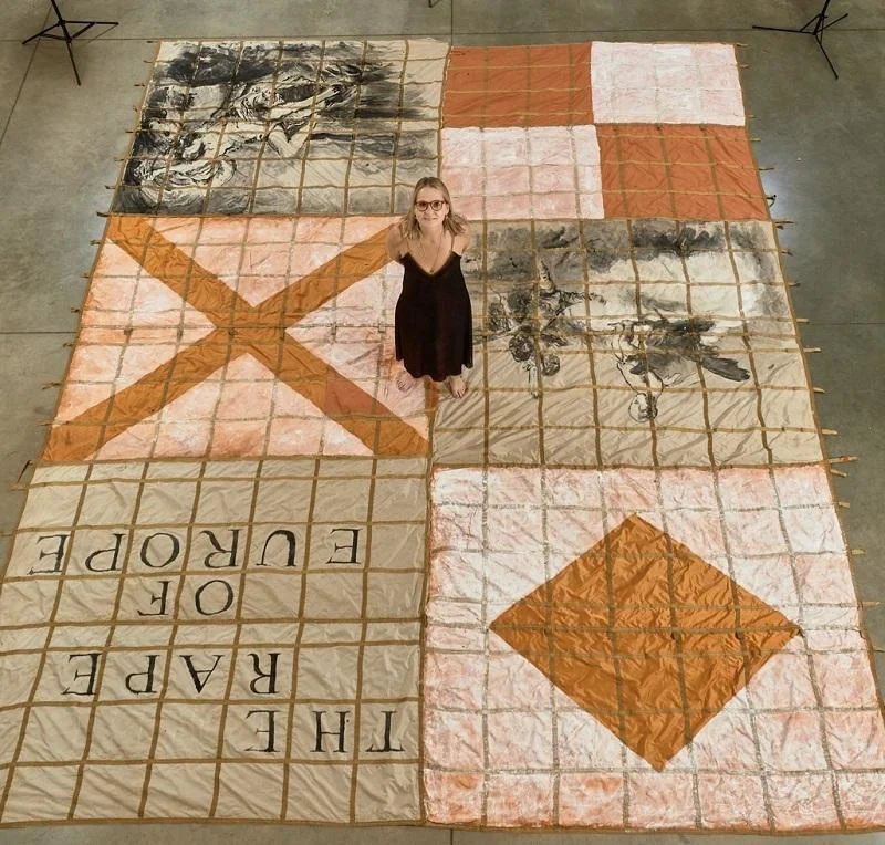 Aprirà al pubblico il prossimo 4 settembre 2024 l’esposizione “Limbo” dell’artista moscovita Katerina Kovaleva, a cura di Olga Strada, negli spazi del CREA Cantieri del Contemporaneo a Venezia, e sarà visitabile fino a tutto il 31 ottobre 2024. Un vero e proprio progetto espositivo che si inserisce nel più ampio programma artistico “Waiting zone”, iniziato dall’artista nel 2022, e che è stato esposto lo scorso anno, per la prima volta, al Museo di storia del GULAG di Mosca. Una delle installazioni di questo progetto “If it Rains” è attualmente esposta alla mostra Personal Structures a Palazzo Bembo nel programma parallelo della 60. Biennale di Venezia. L'artista Katerina Kovaleva cerca di esplorare il fenomeno dell'attesa o del limbo, che in questo momento è particolarmente attuale per l'umanità. L'esposizione monumentale è composta da 4 paracaduti dipinti in acrilico di otto metri ciascuno sospesi ad un'altezza di 6 metri, due tele di paracadute che rappresentano “Il ratto d’Europa” e l’opera “Abito da sposa d’Europa" di circa 6 metri, che ha una mappa stampata, che fiancheggiano gli angoli, più 25 opere grafiche di piccolo formato, oltre a 6 morbide tende in sintepon (3 metri di altezza) e ad ulteriori 3 frammenti di paracadute di diverse dimensioni. Le immagini riprodotte sono parte degli affreschi del Tiepolo e rappresentano diverse allegorie come, ad esempio, La Virtù e La Nobiltà che sconfiggono L'Ignoranza. Nella grande tela de “Il Ratto d'Europa”, sono riprodotte immagini di Tiepolo e Tiziano, utilizzando le bandiere di segnalazione marittima (richieste di aiuto e segnali di pericolo) che vogliono rappresentare una richiesta di aiuto da parte di un’Europa violentata, in balia di un mare in tempesta. Un’Europa che resiste debolmente, la cui situazione è disperata, che deve superare miglia marine, aggrappandosi a malapena alla schiena di un toro (quello di Tiziano), che assomiglia più a un agnello mite o a un cane fedele. L’opera “Abito da sposa d’Europa" è un abito da sposa formato da un paracadute sul quale è stampata la mappa dell'Europa, che vuole rappresentare l'immagine di un'eterna sposa che ha nascosto una “via di fuga”, una mappa di evasione, che l’aiuterà a ritornare alla realtà, ai suoi parenti, alle radici, a sé stessa Le carte di evasione o mappe di fuga sono mappe realizzate per chi viene catturato dietro le linee nemiche e che aiutano i prigionieri di guerra, con vari mezzi, nei tentativi di fuga. Un’opera che ha una doppia simbologia: il paracadute o cupola come simbolo di speranza e la mappa come opportunità per trovare una via d'uscita, la salvezza dalla prigionia. La sposa ha la possibilità di scappare dall'altare utilizzando le carte di fuga o di evasione. Il paracadute il “Trionfo dei continenti” è, invece, una composizione a cupola composta da quattro scene allegoriche che rappresentano i quattro continenti Europa, Asia, Africa e America, una utopica struttura simmetrica del mondo, che vuole rappresentare l’equilibrio di coloro che vivono sulla terra, sotto lo stesso cielo Ogni continente è identificato dal proprio codice culturale che proclama il principio fondamentale della sopravvivenza dell'Homo sapiens ad avvalorare l’unità nella diversità. Una cupola per tutti, un solo paracadute, una sola materia dalle cui falle traspare il cielo eterno. La “waiting zone” o “area di attesa” non è altro che la zona nella quale il paracadutista deve rimanere sotto la vela fino all'avvicinamento all'atterraggio. Come la stessa artista Katerina Kovaleva dichiara: “Nel mio lavoro ho interpretato lo stato di un paracadutista in bilico tra cielo e terra, come metafora della nostra dipendenza dalle circostanze esterne, che rappresenta il tempo nel quale ci troviamo legati alla volontà del destino. Come cambia la velocità del tempo nel processo di attesa? Come influisce sulla percezione del nostro percorso, in che modo la nostra anima dipende dall'attesa? Proviamo calma o panico, siamo costretti a fermarci o sentiamo l'accelerazione forzata del tempo e degli eventi? L’attesa ci aiuta a comprendere il tempo? Sui paracaduti ho utilizzato scene allegoriche, tratte dagli affreschi di Tiepolo e Ricci, cieli fantastici abitati da divinità. La mia idea era quella di convertire la vela del paracadute in un paradiso portatile La volta di un paracadute si trasforma in un cielo portatile o nel “soffitto della Speranza” come i “cieli” dipinti di un’antica chiesa russa o gli affreschi di un palazzo veneziano. I miei paracaduti diventano un modello del cosmo, racchiusi nello spazio reale, per creare l'effetto del “paradiso in terra”. Come la stessa curatrice Olga Strada dichiara: “L’arte di Katerina Kovaleva è intrisa di una profondità concettuale che si articola attorno a tre parole chiave: memoria, contemplazione, attesa. Questi concetti attraversano l’intera sua opera come un fil rouge, dando vita a un gioco complesso che conferisce alle sue installazioni una forza poetica intensa. La Kovaleva riesce a trasformare il tempo e lo spazio in esperienze visive e sensoriali, creando ambienti dove la dimensione temporale sembra sospesa, in bilico tra ricordo e desiderio, tra riflessione e tensione verso ciò che deve ancora compiersi. Nel citare i grandi veneziani l’artista, non solo rende loro omaggio, ma pone l’accento sulla memoria, che diventa un elemento dinamico, una meditazione sul tempo e sull’attesa, quasi un’esortazione a riflettere sulla condizione umana, sul nostro essere costantemente in bilico tra scelte etiche da compiere e sul mettere a fuoco una Landig zone che, nel labirinto delle innumerevoli false piste, ci indichi una autentica via di salvezza, soprattutto spirituale. Così definisce la mostra Limbo Andrej Kurilkin: L’uomo seduto sulla valigia, è un fuggitivo o un migrante, colui che ha perso la terra sotto i piedi e l’abituale scenografia del