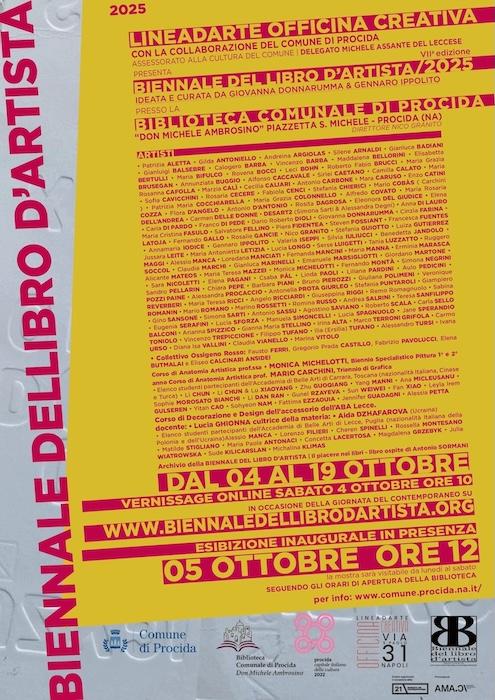 La Biennale del Libro d’Artista torna a Procida alla Biblioteca Comunale di Procida “Don Michele Ambrosino” dal 05 al 19 ottobre, diretta da Nico Granito con la collaborazione del Comune di Procida – Assessorato alla cultura del Comune, delegato Michele Assante del Leccese, confermandosi come uno degli appuntamenti più attesi nel panorama dell’arte contemporanea e dell’editoria creativa. L’evento, giunto alla sua VIIª edizione, riunisce artisti, collezionisti e appassionati da tutto il mondo per celebrare il libro come opera d’arte, luogo di sperimentazione e veicolo di idee.