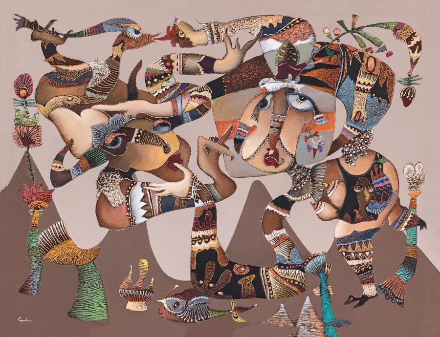 Come da tradizione seicentesca delle Wunderkammer e con una regia che premia le affinità e la simmetria, lo show inizia con la presentazione dell’esemplare unico e primitivo con l’omaggio al grande artista visionario salentino Ezechiele Leandro (1905-1981), con opere di collezione privata di cui cinque provenienti dalla collezione di Antonio Benegiamo, nipote del maestro. Toti Carpentieri nel suo testo in catalogo scrive: “Leandro è un visionario dalla materialità multiforme, diffusa e articolata…non contro, ma fuori da ogni regola”. In mostra, opere potenti che incarnano concetti spirituali, archetipici, cosmogonici e psicologici come le sculture “Senza titolo – La sveglia”, il “Guerriero africano”, “La grotta. Due libri spezzati”, la pittura su carta da parati “La carrozza”, le tele “Un pascolo in aperta campagna”, due “Senza titolo” e la pitto-scultura/assemblaggio “Composizione”. Otto oggetti di culto. Otto come il simbolo dell’infinito. Opere che testimoniano la genialità dell’artista del “Santuario della Pazienza” (la sua casa-museo sita a San Cesario di Lecce), un luogo magico popolato da figure antropomorfe in cemento, ceramiche locali e ciottoli.