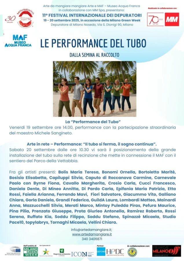 Il noto appuntamento internazionale fra arte e scienza ideato da Arte da mangiare mangiare Arte e realizzato in collaborazione con MM Spa torna venerdì 19 e sabato 20 settembre in occasione della Milano Green Week 2025 presso il Depuratore di Milano Nosedo.