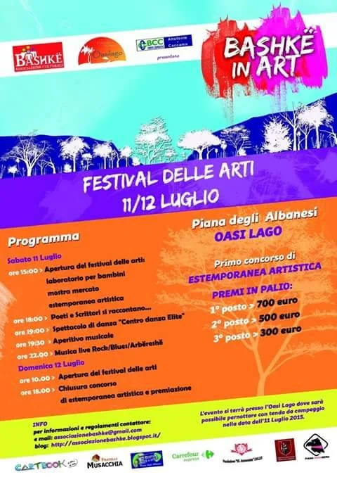 Ci avviciniamo all’evento artistico atteso da mesi, “Bashke in Art - festival delle Arti”, organizzato dall’Associazione Bashke, dall’Associazioni Giovani soci della BCC di Altofonte e Caccamo e da Oasi lago per l’11 e il 12 Luglio 2015.