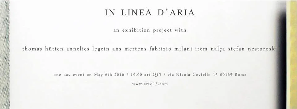 Art Q 13 è lieto di presentare In Linea d’Aria, una mostra collettiva di sei giovani artisti provenienti dal Belgio, l’Italia, la Macedonia, l’Olanda e la Turchia.