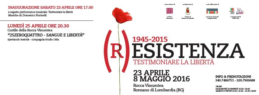 Il Circolo di Ricreazione Artistica “Il Romanino” propone dal 23 aprile all’8 maggio presso la Rocca Viscontea di Romano di Lombardia la realizzazione di una mostra temporanea che racconti la memoria storica della Resistenza e della Liberazione per dare voce non esclusivamente alla Resistenza partigiana, ma anche e soprattutto a tutte quelle persone che si sono battute per la sopravvivenza dei loro ideali. L’evento, organizzato in collaborazione con il Comune di Romano di Lombardia e l’ANPI, si propone di promuovere le testimonianze dei valori di libertà e giustizia sociale che hanno ispirato la Resistenza, attraverso un percorso culturale d’indagine e approfondimento storico che sa però essere innovativo e capace di avvicinare le ultime generazioni.