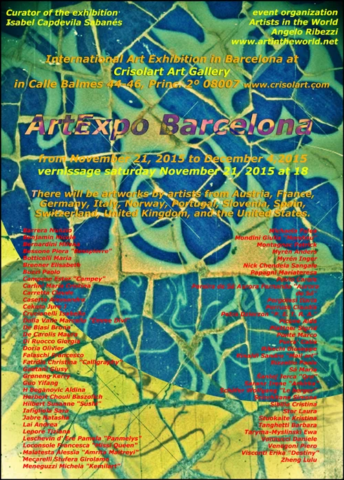 Si inaugura il giorno 21 novembre 2015 alle ore 18 la mostra internazionale d'arte presso la prestigiosa Galleria d'Arte a Barcellona, la Crisolart Art Gallery, che si trova in pieno centro storico (piazza catalunya) in Calle Balmes 44-46, Princ. 2º 08007 Barcelona.