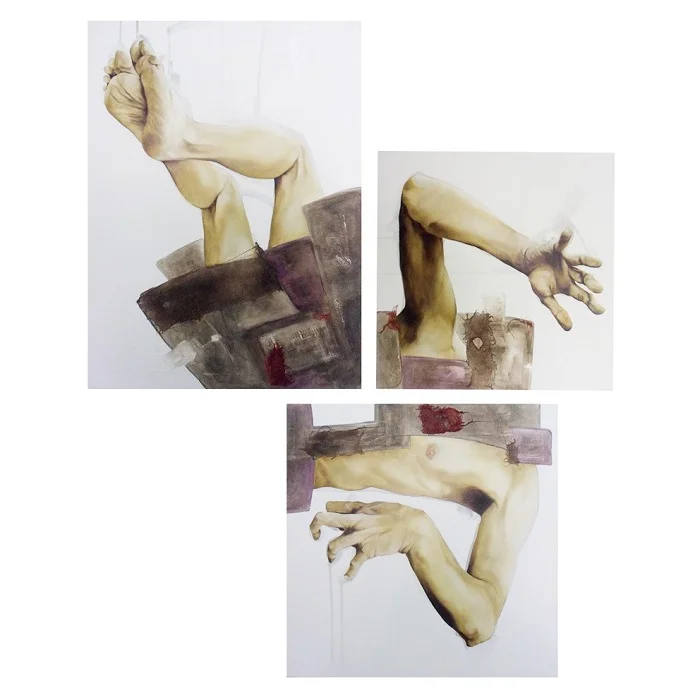 In un altro scritto, la critica Romina Guidelli, da anni attenta osservatrice della ricerca di Molle, osserva che “I muscoli e i tendini, membra squisitamente realistiche nella pittura dell’artista, significano corde e fili nel concetto che vuole esprimere: dipingere frammenti di Forza. Così, dalla bellezza anatomica e carnale che Molle ha sempre dato al corpo, inteso come intero, la sua attenzione s’intensifica sulle parti: la morfologia muscolare e la superficie delle vene, artefici e protagonisti di una pittura che ritrae la danza degli arti come scheggia d’istante: dal ritmo sincopato, all’infinito abbandono. L’armonia dell’insieme viene dunque interrotta e ogni singola “parte” amputata ed esposta al pubblico, acquista ruolo autoreferenziale mentre si concede al giudizio nuda e carica di vitalità.”.
