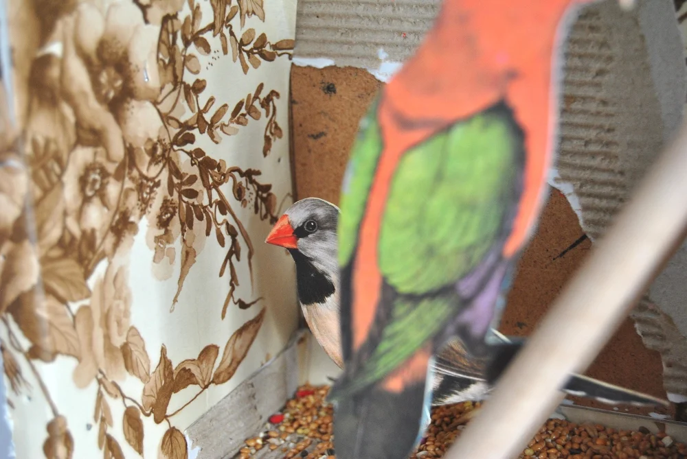 Gli assemblaggi in mostra sono composti, singolarmente, da collage di figure di volatili ritagliate da vecchi libri di illustrazione sul mondo naturale, combinate ad elementi sottratti al reale: carta da parati ornamentale, scatole di alluminio e boxes di ogni tipo vengono trasportate in un contesto poetico in cui elementi naturali e scarti artificiali convivono. Elaborati con minuzia tecnica e profondo equilibrio compositivo, ognuno di questi teatrini ammalia e si lascia osservare, seducendo l'osservatore e invitandolo a scorgersi dentro per cercare un contatto con l'opera.