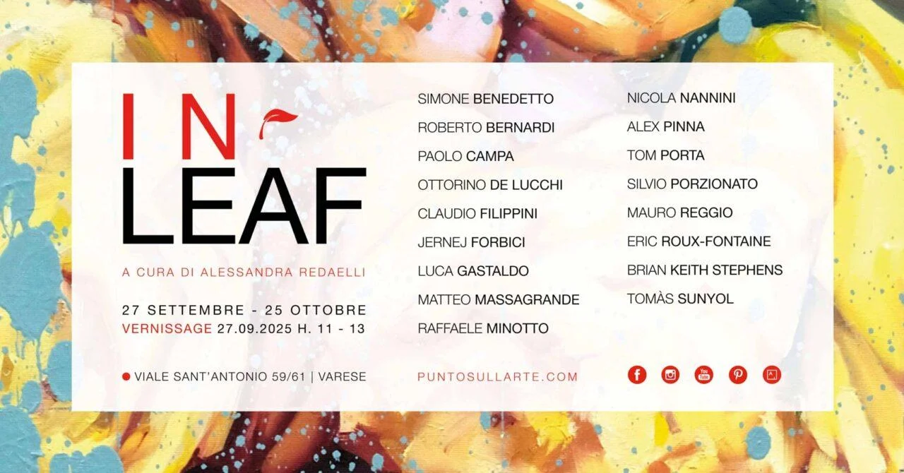 PUNTO SULL’ARTE festeggia l’autunno con IN-LEAF, una mostra imponente, accesa di colori infuocati. La galleria ha invitato diciassette dei suoi artisti a raccontare la loro idea dell’autunno, stagione controversa, pervasa di nostalgia e di voglia di rinascita, e ne è uscito un canto corale affascinante, mai prevedibile, dove l’incendio delle foglie è solo una delle interpretazioni possibili.