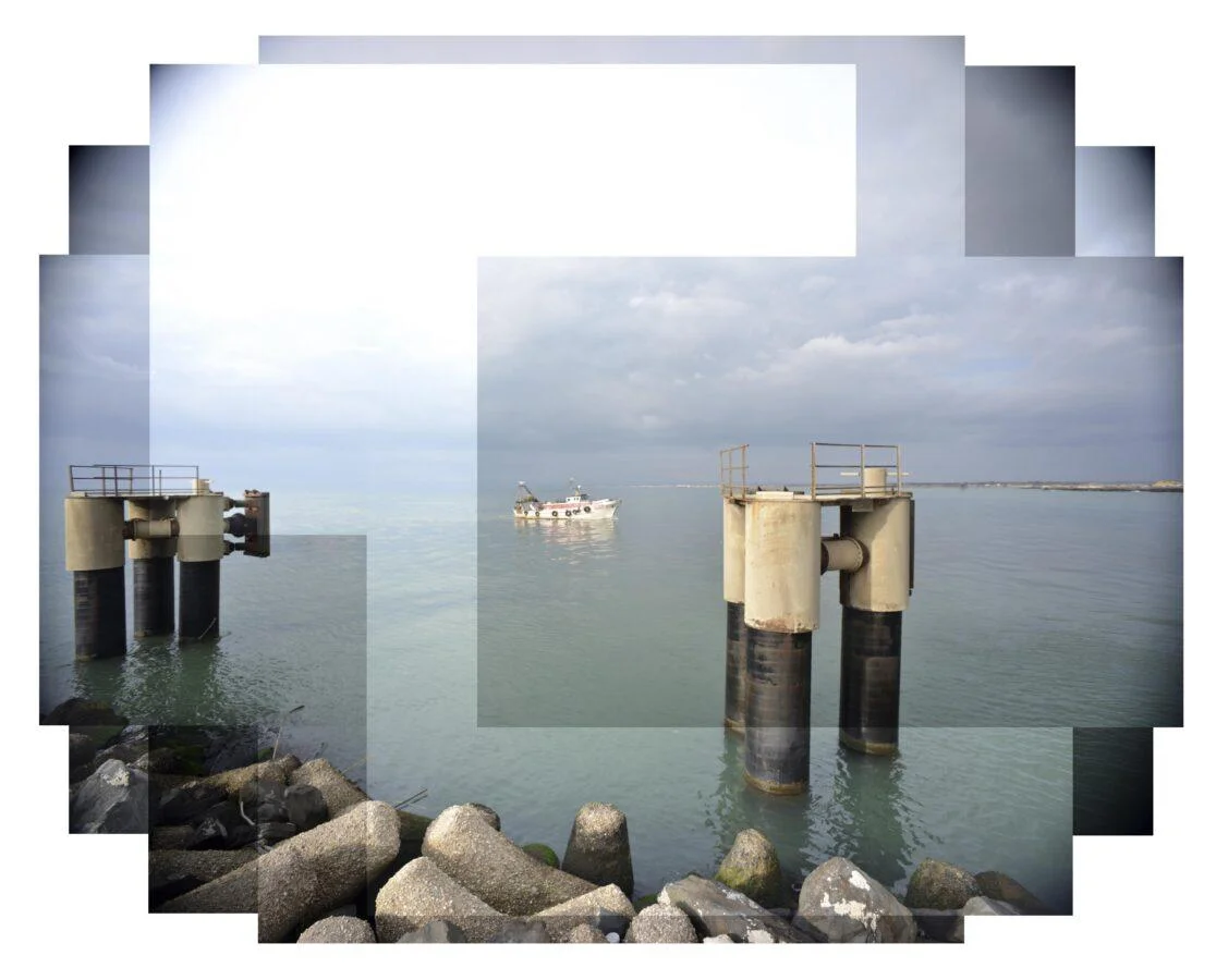 Utilizzando un obiettivo decentrabile – normalmente utilizzato per la fotografia architettonica e urbanistica, che tradisce le origini e la formazione di Roberto Mirulla – ha iniziato a lavorarci nel 2019, pensando di concentrarsi su paesaggi romani. Ma la ricerca ha preso una strada imprevista, scoprendo nuove possibilità: così le vedute urbane sono state soppiantate da ampi squarci di cielo, di acqua, di spessori atmosferici, cercati e trovati in luoghi dove la mutevolezza si fa più affascinante e la ricerca dello scatto multiplo diventa quasi obbligo per l’ampiezza dello sguardo.
