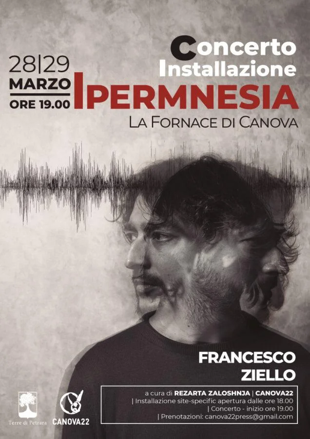 L'Associazione Canova22 ospita e presenta “Ipermnesìa” del compositore e soundartist Francesco Ziello, un’opera dalla doppia natura di performance sonora e installazione site-specific che avrà luogo il 28 ed il 29 marzo 2025 presso la Fornace di Canova, a cura di Rezarta Zaloshnja. In questi due giorni, la Fornace aprirà le porte alle ore 18:00 per poter vivere l’esperienza immersiva dell’installazione, seguita alle 19:00 dal concerto del musicista e autore dell’opera.