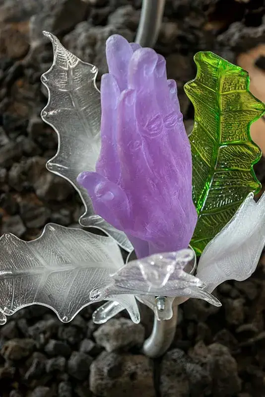 Il progetto si configura come un ambiente in cui materia organica, artificiale e trasformata convivono in un equilibrio instabile, aprendo nuove possibilità percettive e immaginative. Più che raccontare una narrazione lineare, la mostra costruisce uno spazio esperienziale capace di mettere in discussione i confini tra naturale e sintetico, reale e visionario. Al centro del percorso espositivo si colloca l’opera che dà il titolo alla mostra: una grande installazione scultorea composta da elementi in vetro e materiali minerali. La forma richiama una pianta immaginaria, ispirata al cardo selvatico dei paesaggi aridi del Mediterraneo. Dallo stelo emergono fiori che sembrano mani giunte verso l’alto, evocando simultaneamente il gesto della preghiera, la crescita vegetale e una tensione spirituale inscritta nella materia. La trasparenza del vetro trasforma la fragilità apparente in una presenza luminosa e tagliente, attraversata da una forza vitale sotterranea. Accanto a questa installazione si sviluppa Amor Mundi, serie di nove sculture che si propagano nello spazio con una presenza silenziosa ma persistente. Le opere, compatte e lucide, evocano forme ibride tra organismo naturale e costruzione artificiale. Estensioni filamentose e dettagli sensibili emergono dalle superfici, suggerendo processi di mutazione continua. Il titolo richiama il pensiero di Hannah Arendt e introduce una riflessione sull’amore per il mondo come pratica di apertura, trasformazione e responsabilità verso ciò che ci circonda. Chiude l’esposizione 965, lavoro costruito per accumulo, in cui piccoli elementi si aggregano su superfici dense e quasi tessili. L’opera suggerisce un processo di crescita collettiva, in continua espansione oltre i limiti fisici dell’oggetto. Attraverso la ripetizione e la proliferazione della forma, Priolo indaga il rapporto tra ordine e disordine, controllo e spontaneità, fragilità e resistenza.