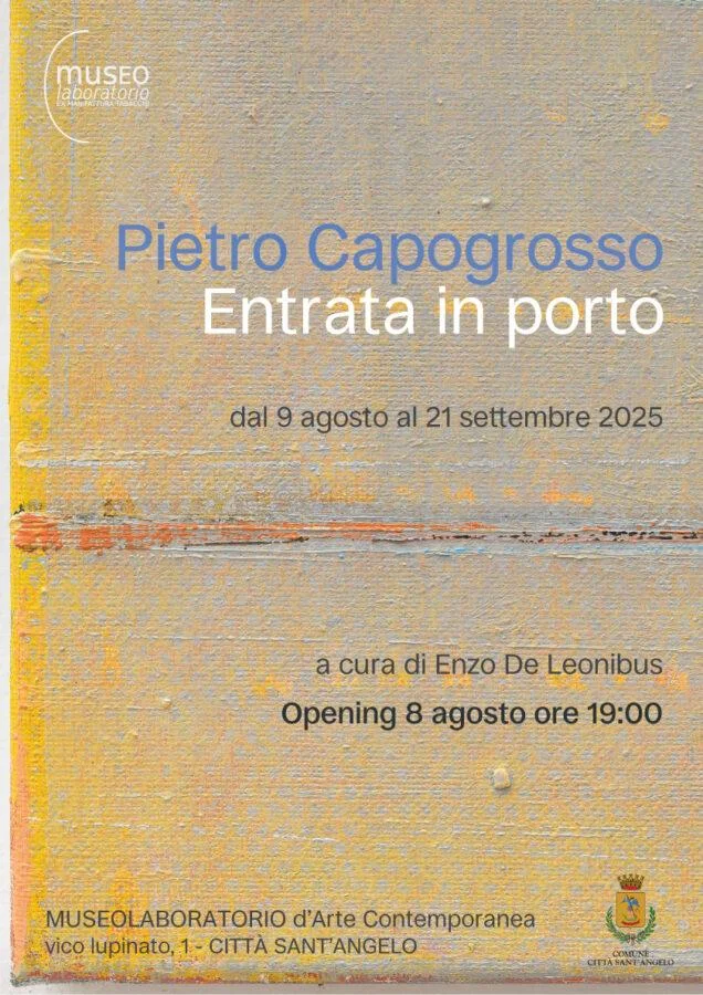 Il Museolaboratorio presenta con molto piacere una mostra di Pietro Capogrosso dal titolo Entrata in porto e come in tutte le nostre attività è stata cercata, voluta, desiderata, è una mostra carica di stratificazioni poetiche che trovano l'approdo in quella luce, in quei colori che presagiscono nuovi orizzonti: altri viaggi.