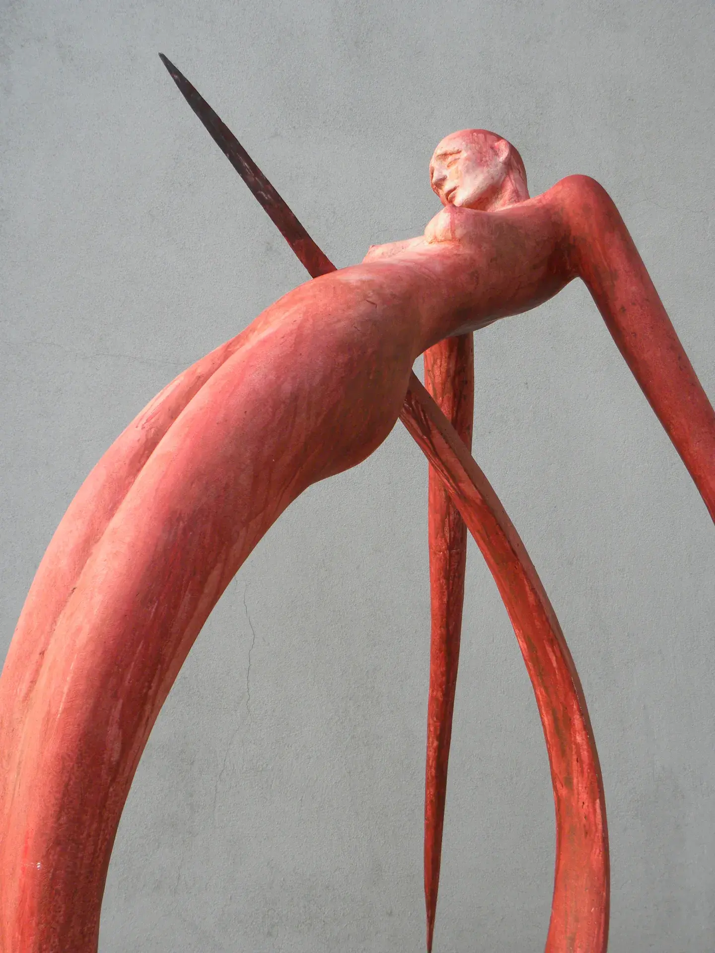 Il progetto si configura come un ambiente installativo in cui scultura, suono, architettura e memoria si intrecciano in una riflessione intensa sulla fragilità dell’identità, sul trauma della separazione e sui processi di trasformazione individuale e collettiva. Al centro della mostra vi è la figura di Medea, sottratta alla tradizionale lettura tragica per diventare simbolo contemporaneo di esilio, dislocazione e mutazione. Più che personaggio mitologico, Medea emerge come soglia interpretativa attraverso cui leggere tensioni culturali, memorie spezzate e appartenenze instabili. Il riferimento alla Colchide, territorio legato al mito e alle origini georgiane dell’artista, apre una riflessione sulle geografie simboliche dell’Est europeo e sulle stratificazioni storiche che ancora attraversano il presente. Nel percorso espositivo, Venezia assume un ruolo centrale come città-limite, sospesa tra conservazione e scomparsa, splendore storico e precarietà contemporanea. Questa tensione prende forma in un modello urbano modulare che appare e si dissolve ciclicamente, evocando una città in costante ridefinizione. Le superfici in carta rossa e blu, segnate da fratture, accumuli e incisioni, si presentano come archivi sensibili del tempo: non semplici immagini, ma tracce materiche di ciò che resta, riaffiora o scompare. Le sculture cinetiche introducono una dimensione corporea e temporale che amplifica l’esperienza della mostra. In Reptile, struttura ibrida che connette pavimento e parete, il rettile diventa simbolo arcaico di sopravvivenza e metamorfosi, una sorta di spina dorsale della memoria capace di attraversare trauma e rigenerazione. In Whirling Woman, invece, il movimento rotatorio continuo trasforma il corpo in energia circolare, liberandolo da ogni linearità narrativa e suggerendo una condizione di esilio permanente, interiore e storico. Fondamentale è anche la componente sonora affidata a Soundwalk Collective, con la composizione Medea realizzata da Stephan Crasneanscki e Simone Merli. Costruita attraverso onde radio, registrazioni ambientali e frammenti vocali provenienti dall’area del Mar Nero, la traccia sonora genera un paesaggio acustico frammentato e immersivo che non accompagna semplicemente la visione, ma la destabilizza e la espande nello spazio percettivo.