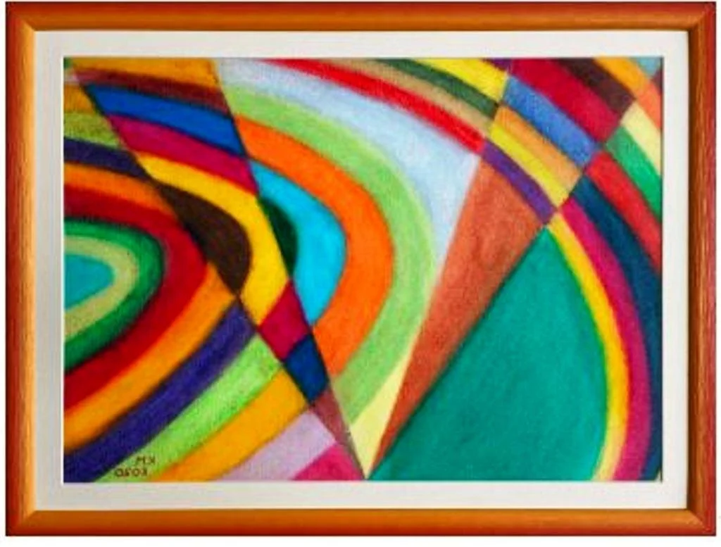 Così nella sua vasta produzione troviamo presenti tantissime e diversificate tecniche, dal disegno al pastello, dalla pittura ad olio al mosaico, dal ricamo all’arte digitale. Certamente Karin ha sentito il fascino dell'Astrattismo Geometrico dove si annulla ogni riferimento con il reale, dove tutto diventa forma e colore e la sua ricerca si è dunque rivolta pienamente alla costruzione geometrica delle forme, alla luce e al colore intesi come protagonisti quasi assoluti delle sue costruzioni. Un ricerca lunga e costante, quella di Karin, portata avanti con metodo e rigore quasi scientifici, seguendo sempre il filo diretto dei suoi pensieri, del suo linguaggio, del suo modo di intendere e concepire la comunicazione artistica. Le sue opere attuali si presentano allora come un armonico insieme di forme e colori al cui interno scorrono segni, percorsi e traiettorie dove si uniscono cuore e ragione, riflessione e sentimento. In esse c'è sempre grande attenzione alla geometria, alla costruzione e al movimento astratto delle forme che si rincorrono sui supporti in un gioco straordinario e piacevole fatto di incastri e sovrapposizioni, di improvvise interruzioni e ripartenze.