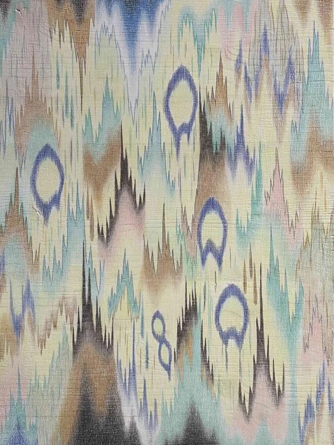 In realtà si tratta di una nuova ricerca sulla stratificazione e la ripetizione del gesto ricondotto alla dimensione essenziale di linea e colore che produce delle sequenze ritmiche che rimandano a segmenti musicali. Tali sequenze oltre che essere presentate attraverso dipinti a olio o pastelli, creano anche in ambito tessile una trasposizione volta a mantenere un equilibrio tra l’astrazione, il farsi materia e oggetto rituale. Il tutto in un’atmosfera attraversata da brani ambient music creati dall’artista appositamente per questa esposizione da Carta Bianca.