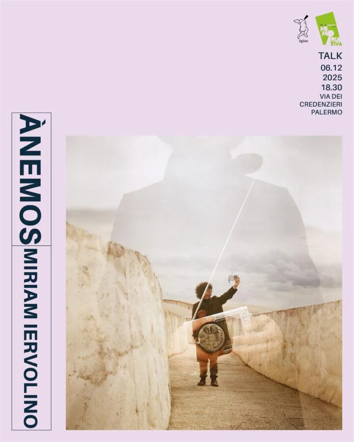 Sabato 06 dicembre 2025, dalle ore 18.30, a Église sarà presentato il progetto fotografico Ànemos, nostalgia di un tempo mai vissuto di Miriam Iervolino. Con l’autrice dialogheranno Giuseppe Maiorana, direttore del museo Belìce/EpiCentro della Memoria Viva, e Iole Carollo, nella consueta formula del tableau vivant.