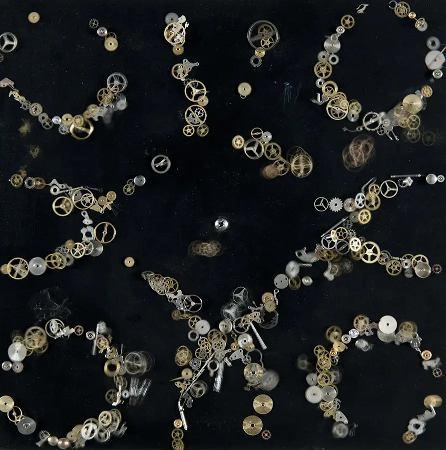 In mostra, per la prima volta, una serie di lavori mai esposti come Barcoland, le matrici sperimentali, gran parte delle fotoincisioni e la serie GUNS, presentati non come capitoli conclusi, ma come nodi ancora attivi del percorso. Accanto a questi, le opere legate alle lastre di Chladni, che rendono esplicito il principio generativo del lavoro, e una selezione di lavori realizzati con la tecnica ReGolaB, già presentati nel progetto ESCAVE e qui riconsiderati all’interno di un nuovo contesto di dialogo. Completa il percorso una selezione di fotografie stenopeiche, realizzate in anni diversi e riproposte non come testimonianza storica, ma come elementi ancora strutturalmente vitali nel sistema della mostra.