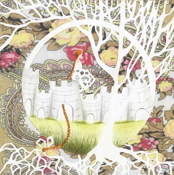 I disegni su carta vellum sovrapposti ad intagli eseguiti in paper cutting o a sete pregiate, sono volutamente delicati, trasparenti, leggiadri per sottolineare e contrapporsi all’importanza dell’argomento analizzato.