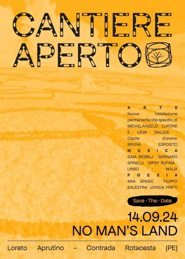 Sabato 6 settembre 2025, dalle 12:00 alle 18:00, torna Cantiere Aperto, alla sua terza edizione, presso No Man’s Land in contrada Rotacesta a Loreto Aprutino (PE). Per il terzo anno consecutivo, arte contemporanea, musica e poesia si intrecciano in una giornata di condivisione collettiva, in un luogo che si propone come spazio aperto, accogliente e partecipato.