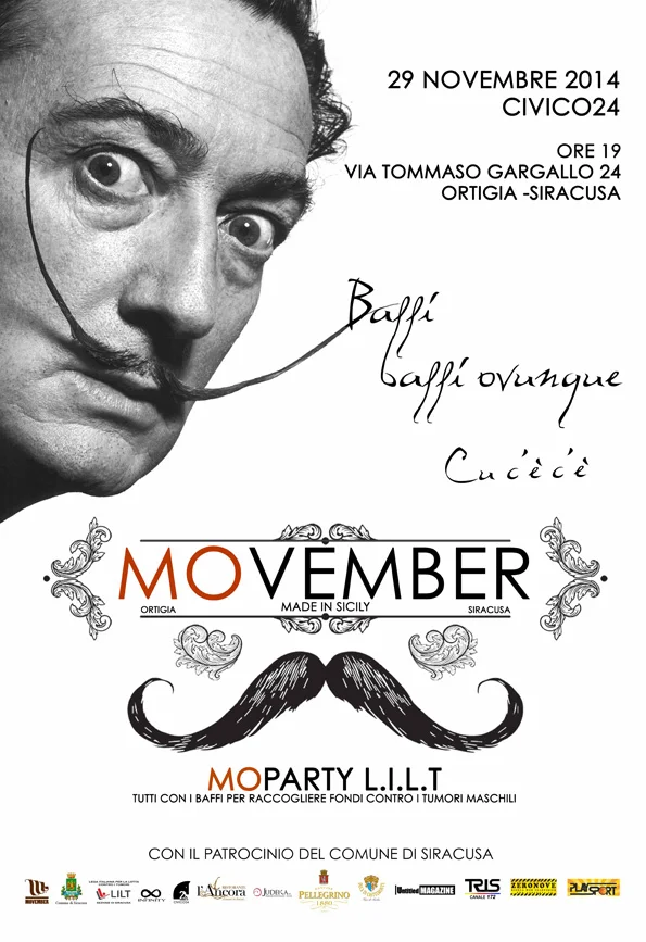 Con il Patrocinio del Comune di Siracusa, l'Infinity Agency in collaborazione con la L.I.L.T. di Siracusa e Movember sono lieti di invitare al MOPARTY LILT, la serata di beneficienza per la raccolta fondi contro i tumori maschili, che si terrà sabato 29 novembre 2014 dalle ore 19 alle ore 21:30 presso i locali di Civico24, in Via Gargallo 24 a Siracusa.