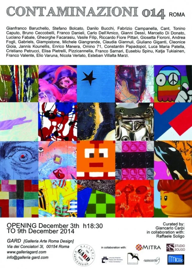 Dopo l’allestimento nel Museo di Storia e Archeologia di Costanza in Romania, e quello allargato agli artisti rumeni e bulgari nella City Art Gallery di Varna, in Bulgaria, la mostra Contaminazioni 014 presenta in Italia, nella Galleria Gard di Roma, solo artisti viventi. La proposta di un contemporaneo italiano contaminato (all’ombra del commodity) restava storicizzante o dialettica, a essa si è sostituita un’avvenuta contaminazione.