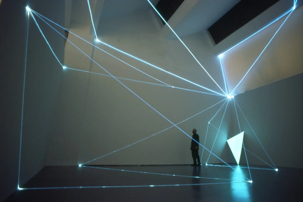 Sabato 17 gennaio sarà la volta di Carlo Bernardini che, con la sua mostra Coordinate Invisibili, rompe l’unità volumetrica del grande spazio espositivo con installazioni di sottili fibre ottiche che disegnano geometrie di luce normalmente celate nella sfera del possibile.