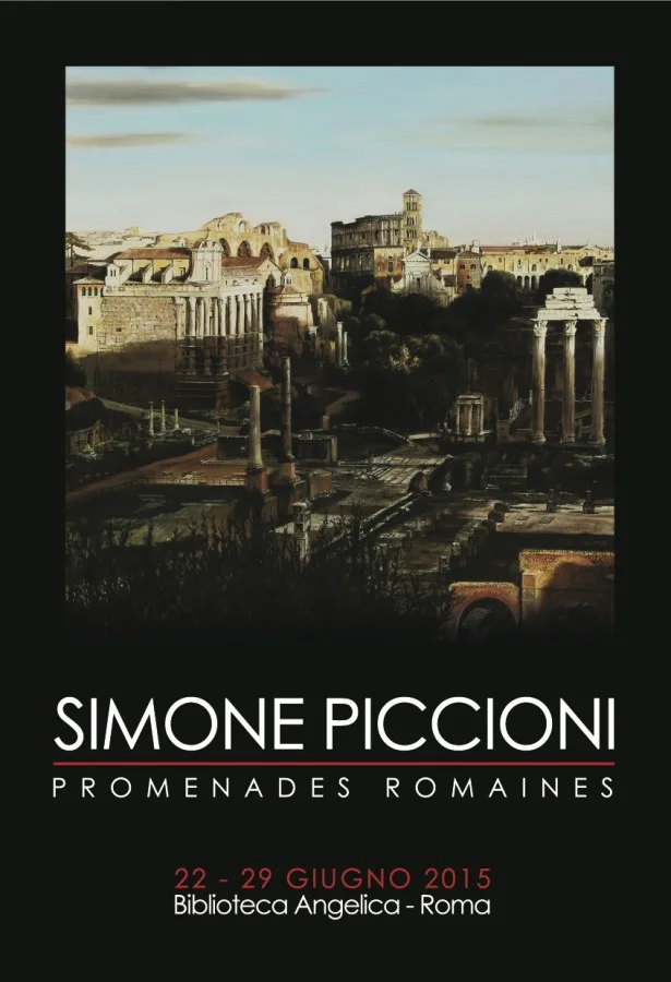 Il titolo Promenades Romaines ricalca i suoi intenti in una lunga ricognizione con il linguaggio della pittura intorno ai luoghi più conclamati della Città Eterna. Ci sono, riconoscibili, i luoghi per eccellenza di un pellegrinaggio devoto alla vitalità nel dipingere per immagini reinventate interiormente da Simone Piccioni in ognuno dei suoi quadri. Penombre, scorci, prospettive audaci o rituali, il tutto legato indissolubilmente dall'autore, alla solidità delle sue visioni.